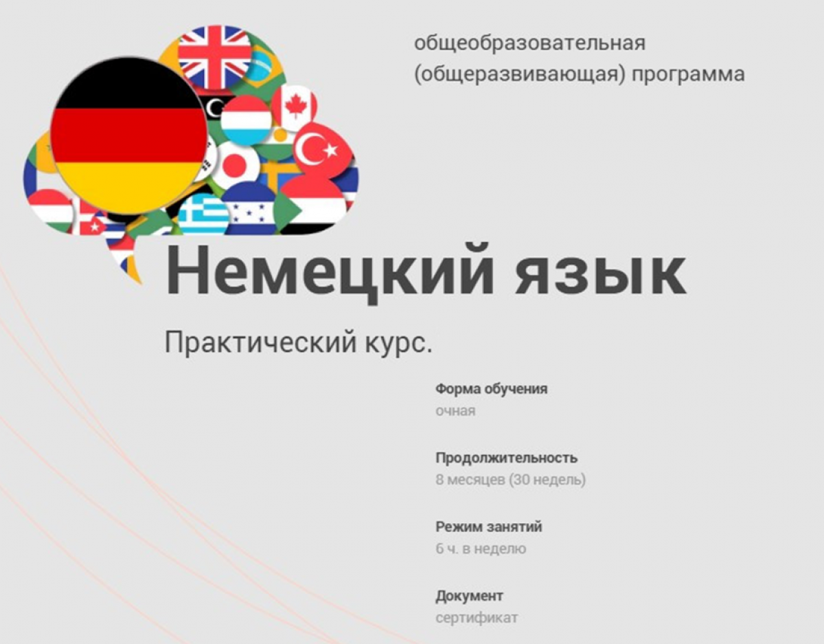 Приглашаем желающих пройти обучение по дополнительной общеобразовательной (общеразвивающей) программе «Практический курс иностранного языка (немецкий, уровень А1-А2)»!