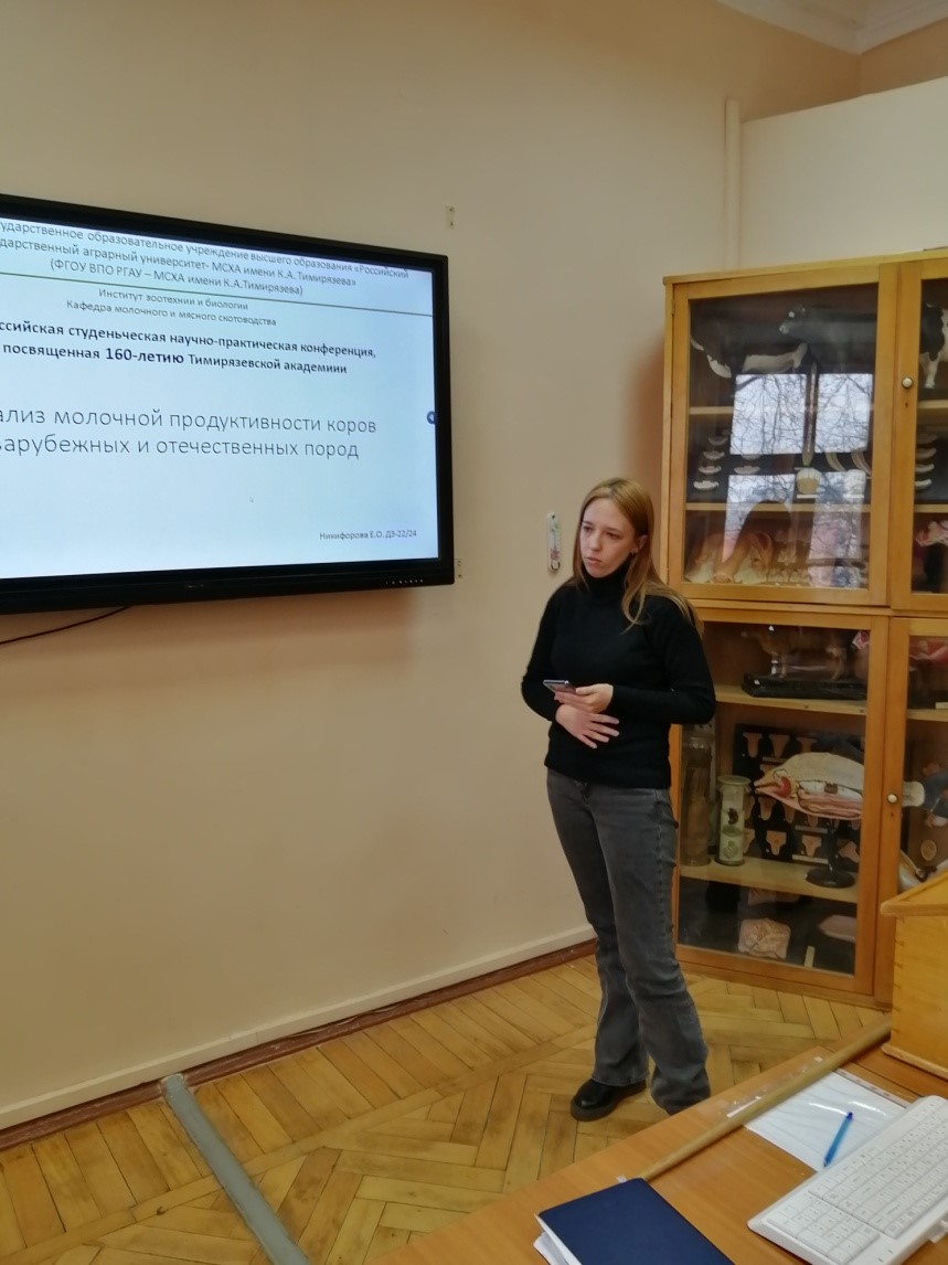 Заседание студенческого научного общества прошло 17 марта 2025 г. в рамках работы 78 Всероссийской студенческой научно-практической конференции, посвященной 160-летию Тимирязевской академии, секция «Перспективы развития молочного и мясного скотоводства».