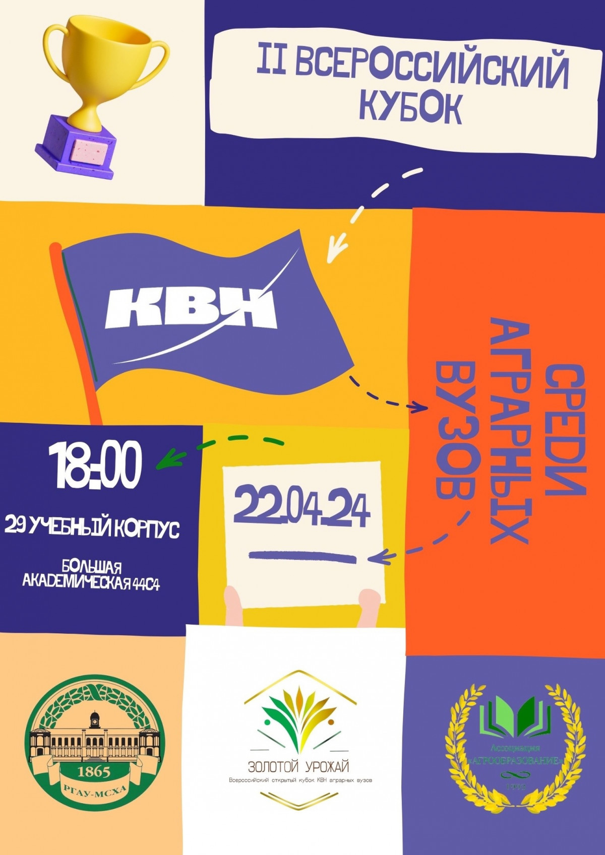 На площадке Тимирязевской академии соберутся 9 команд КВН. Зрителей ждут самые искрометные шутки, звездное жюри, выступление кавер-группы, розыгрыш мерча и многое другое. Такое точно нельзя пропустить!