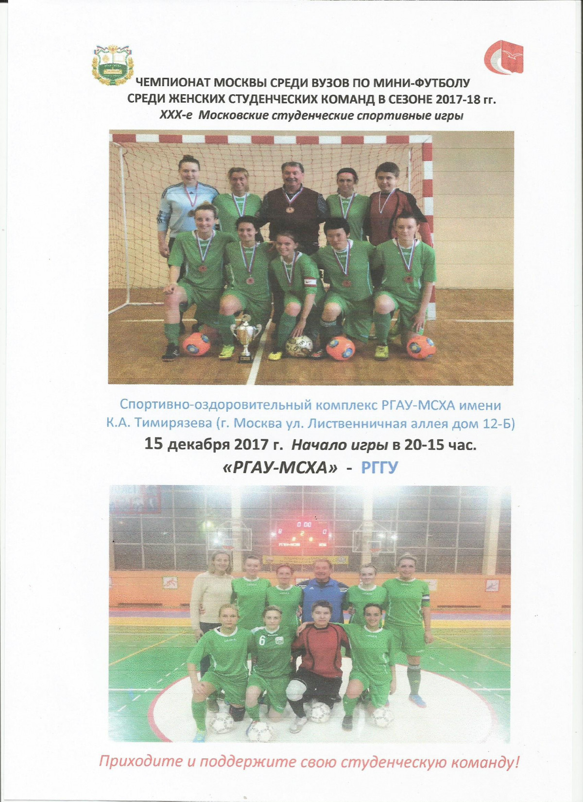 Чемпионат Москвы среди вузов по мини-футболу среди женских студенческих команд в сезоне 2017-18 гг.