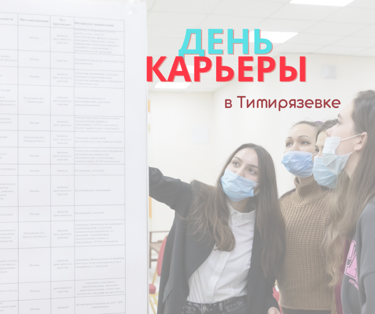 Приняв участие в Ярмарке вакансий в Тимирязевке, вы получите возможность презентовать свою организацию, пообщаться со студентами и выпускниками по вопросам производственной практики и трудоустройства, договориться о сотрудничестве с выпускающими кафедрами.