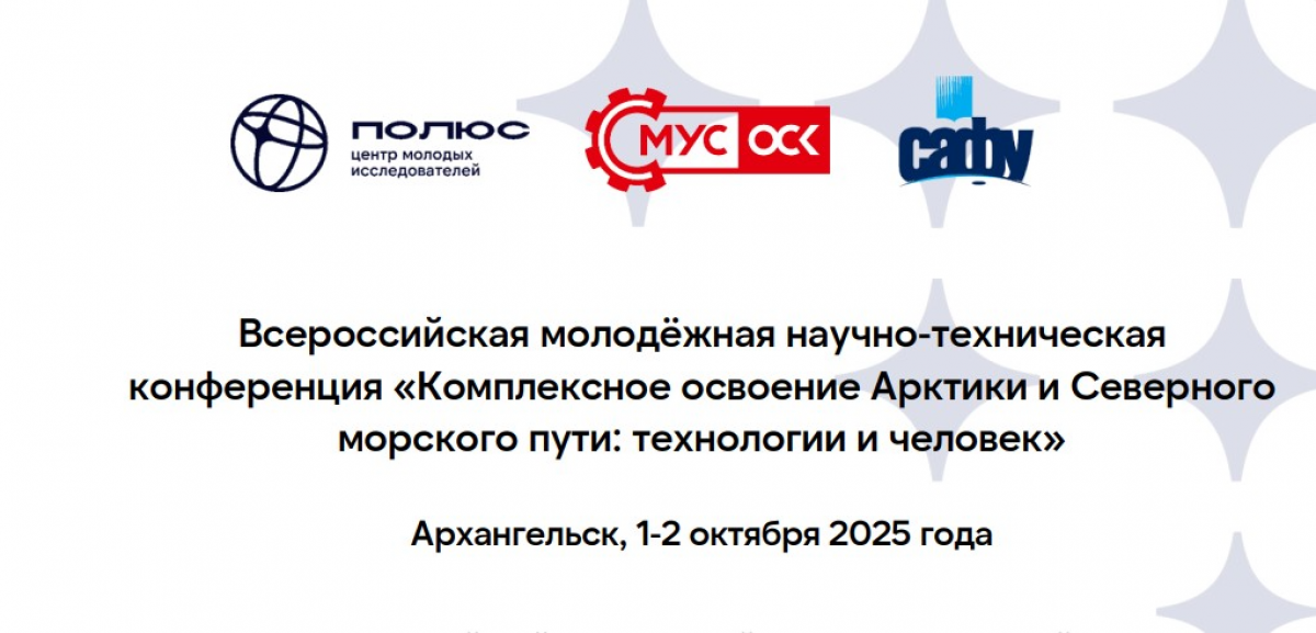 Приглашаем студентов, аспирантов и молодых учёных университета на Всероссийскую молодёжную научно-техническую конференцию «Комплексное освоение Арктики и Северного морского пути: технологии и человек», которая состоится в Архангельске с 1 по 2 октября 2025 года.