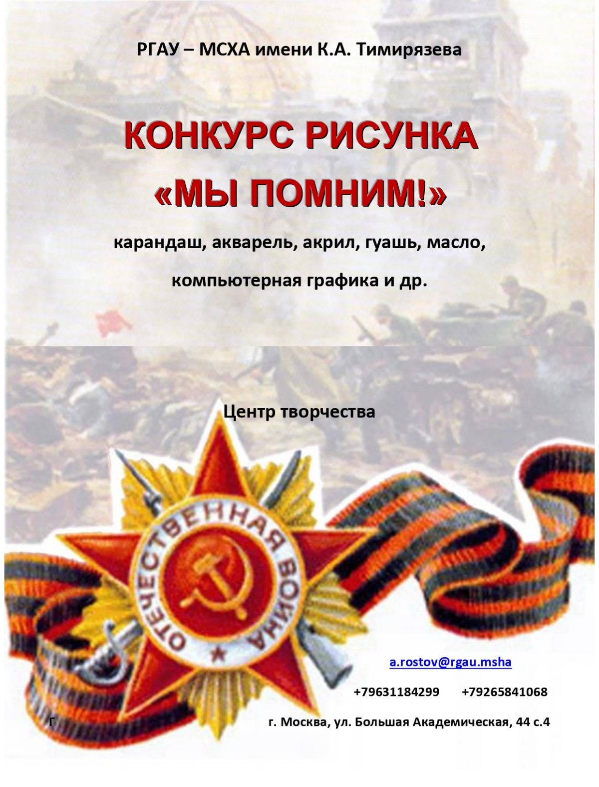 В преддверии праздника Победы Студия изобразительного творчества "Палитра" приглашает студентов принять участие в конкурсе рисунка "Мы помним".