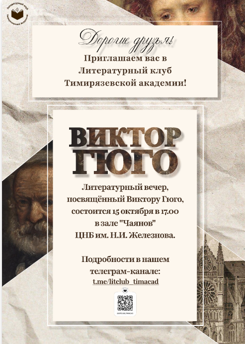 Подробности в телеграм-канале Литературного клуба: t.me/litclub_timacad