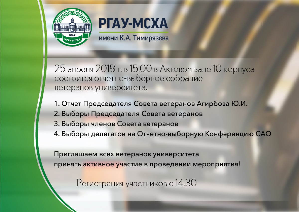 25 апреля в 15.00 в актовом зале 10 корпуса состоится отчетно-выборное собрание ветеранов