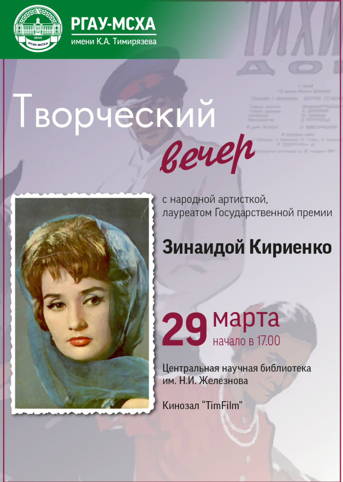 Народная артистка, лауреат Государственной премии встретится с тимирязевцами.