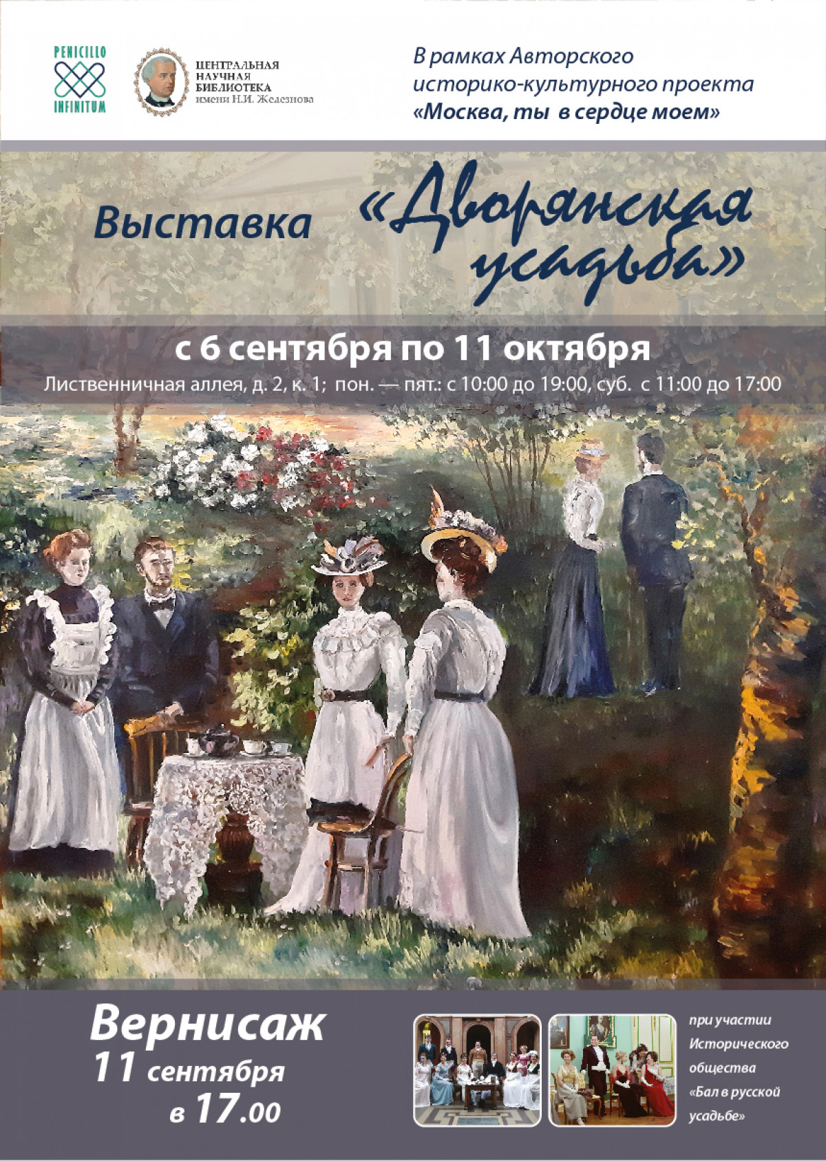 Приглашаем на выставку живописи «Дворянская усадьба», которая откроется 11 сентября в 17:00 в 170 зале ЦНБ имени Н.И. Железнова (Лиственничная аллея, д. 2, к. 1).