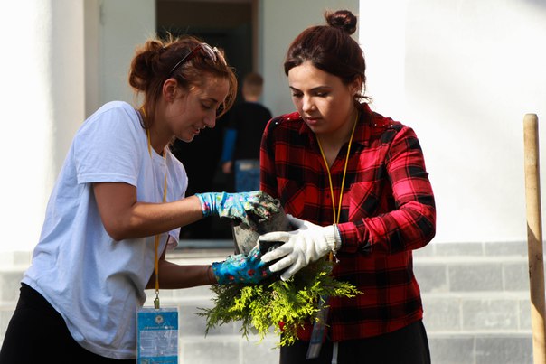 Все группы первого курса под руководством своего куратора принимают участие в работах по благоустройству территории академии.