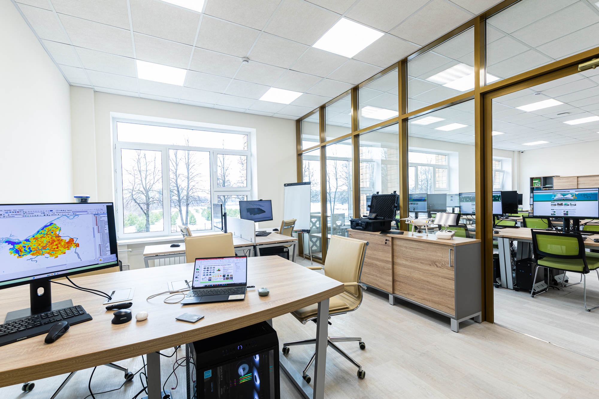 В лаборатории установлены специализированные рабочие станции для обработки пространственных данных, дроны для аэросъёмки и картографирования, а также серверные узлы для хранения и анализа больших геоданных. Программный стек включает QGIS, ArcGIS, Scanex Image Processor, Rasterio, GeoPandas, а также пакеты для анализа временных рядов и машинного обучения.