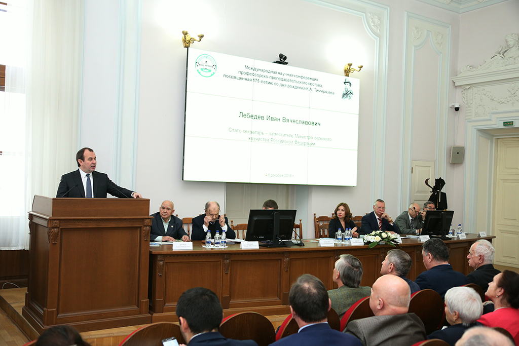 И.о. ректора Валерия Чайка в своем приветственном слове отметила, что в рамках юбилейной даты на протяжении всего года в академии проведена масса знаменательных мероприятий: научные конференции, международные симпозиумы, круглые столы и многое другое. Подготовлены книги и опубликованы статьи, посвященные 175-летию К. А. Тимирязева.