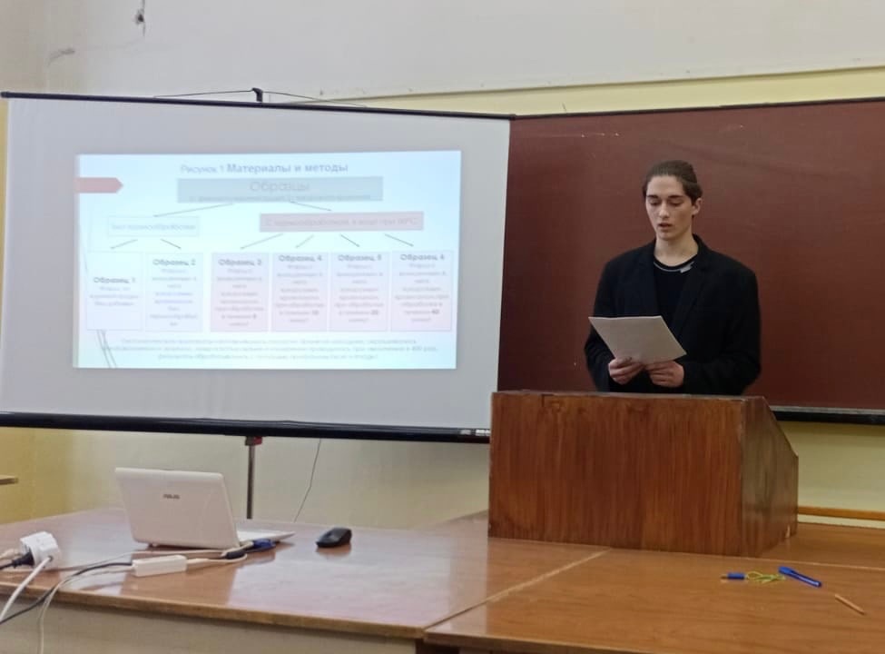 Диплом II степени получил Мизинов Марк Георгиевич с докладом «Влияние термической обработки на микроструктура кукурузного крахмала в составе мясного продукта»