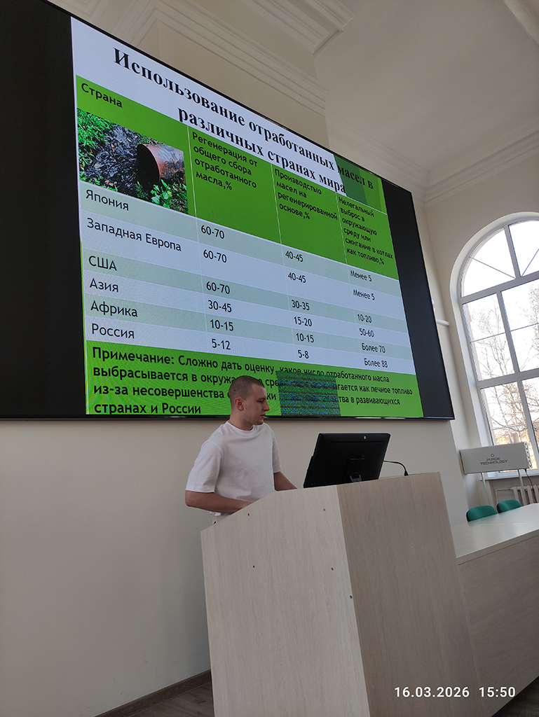 Диплом 2 степени – Володькин Иван Евгеньевич «Восстановление отработанного масла в условиях автосервиса» (руководитель: к.т.н., доцент Гусев С.С.)