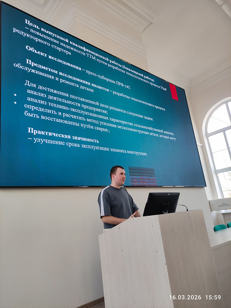 16 марта 2026 г. в рамках 79-ой Всероссийской студенческой научно-практической конференции, посвященной 80-летию Студенческого научного общества Тимирязевской академии, на кафедры технического сервиса машин и оборудования состоялась секция «Реинжиниринг транспортно-технологических машин».