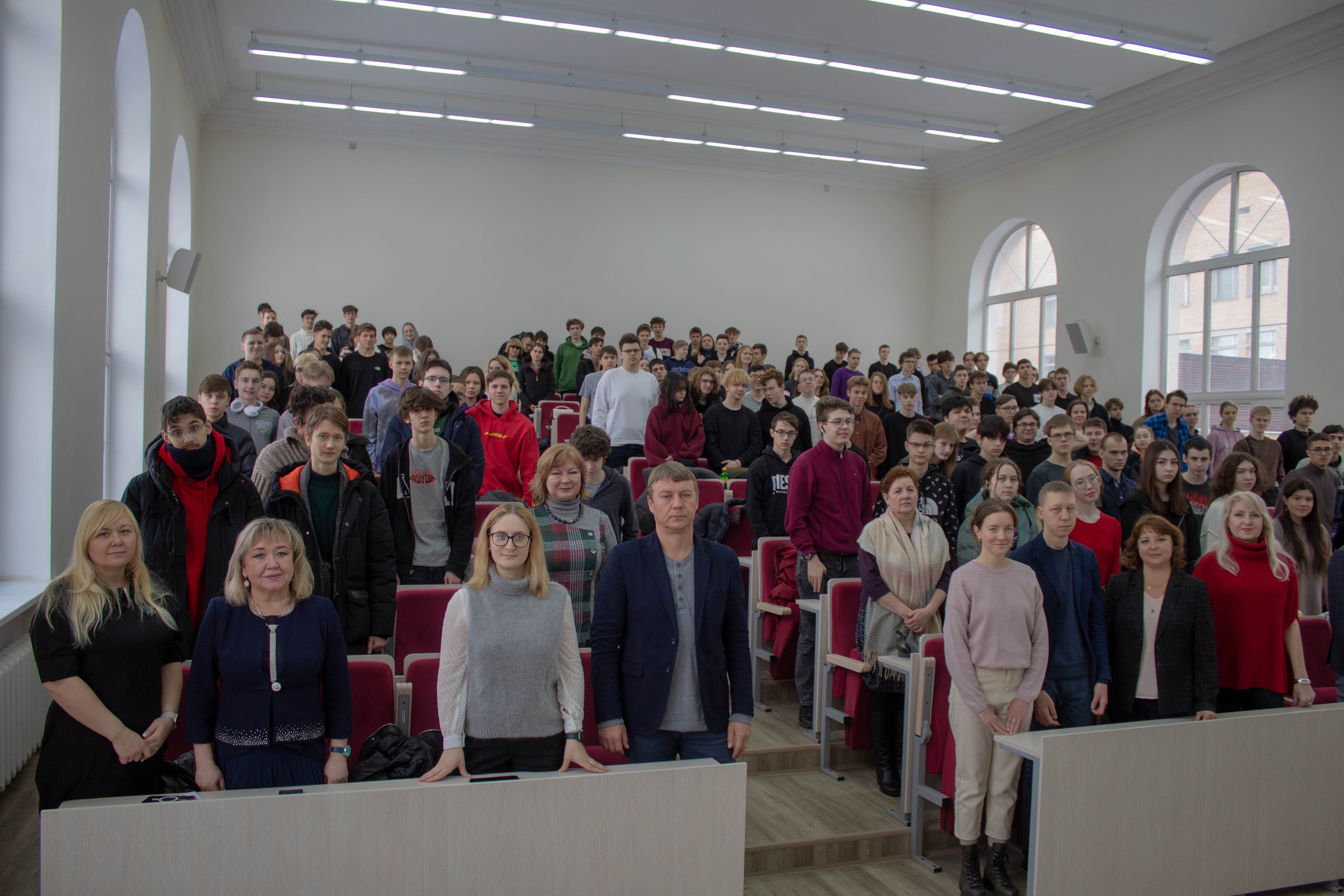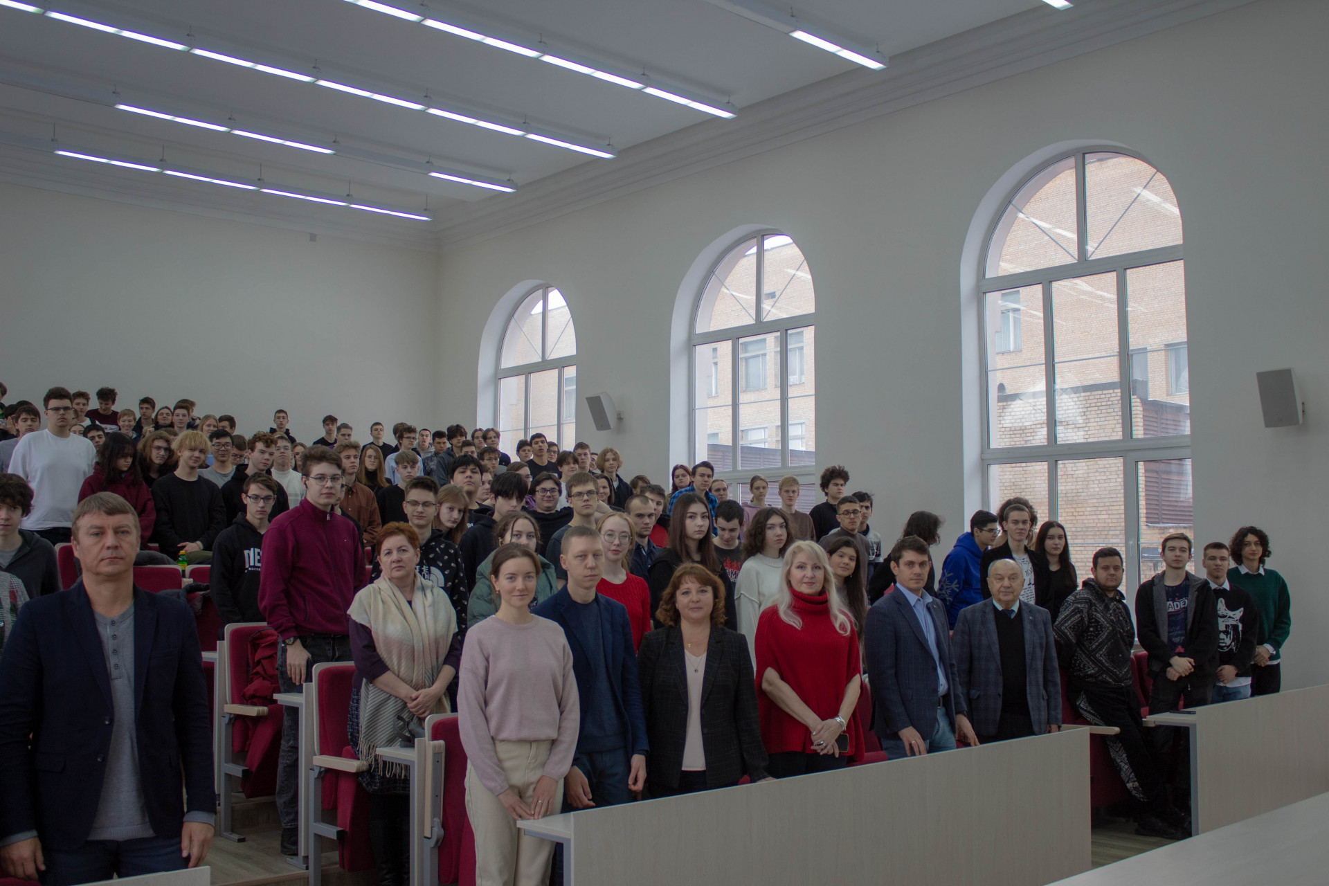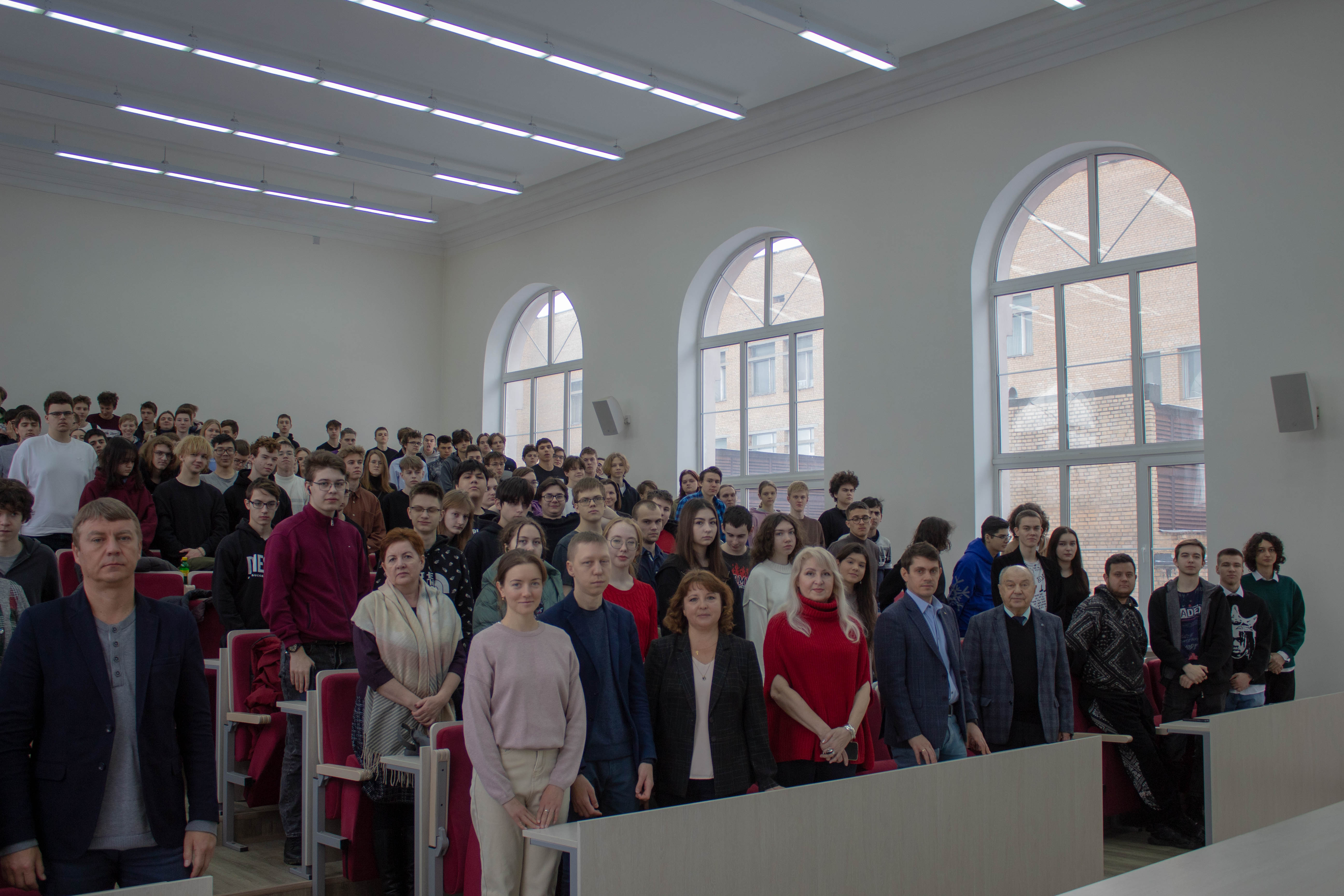 Также школьников поприветствовал Академик РАН, д.т.н., профессор кафедры сопротивление материалов и детали машин Ерохин Михаил Никитьевич и рассказал об истории Института и выдающихся выпускниках.