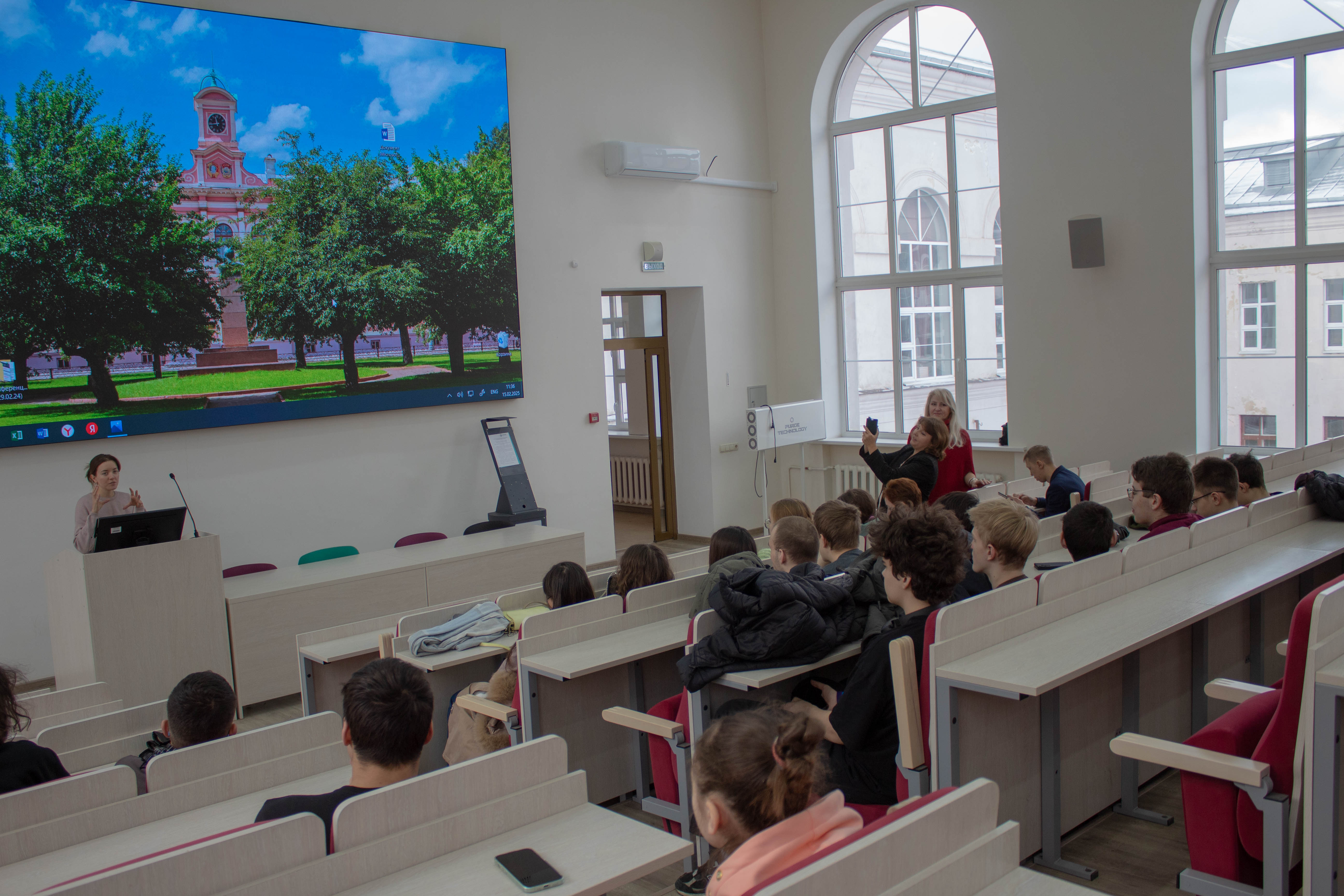 О направлениях подготовки и кафедре инженерной и компьютерной графики ребятам рассказали к.т.н., доцент кафедры Рыбалкин Дмитрий Алексеевич и к.т.н., доцент кафедры Волкова Светлана Николаевна.