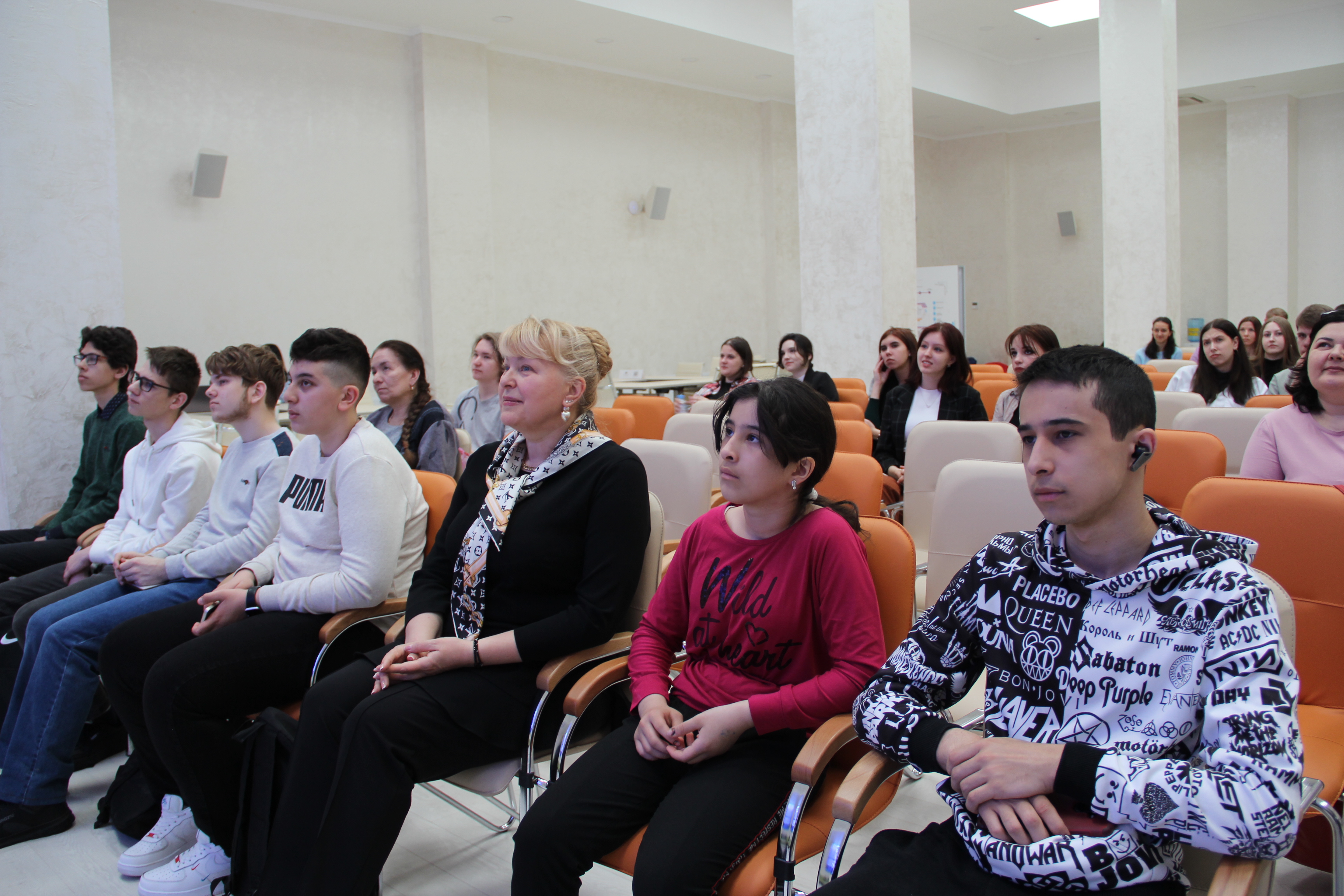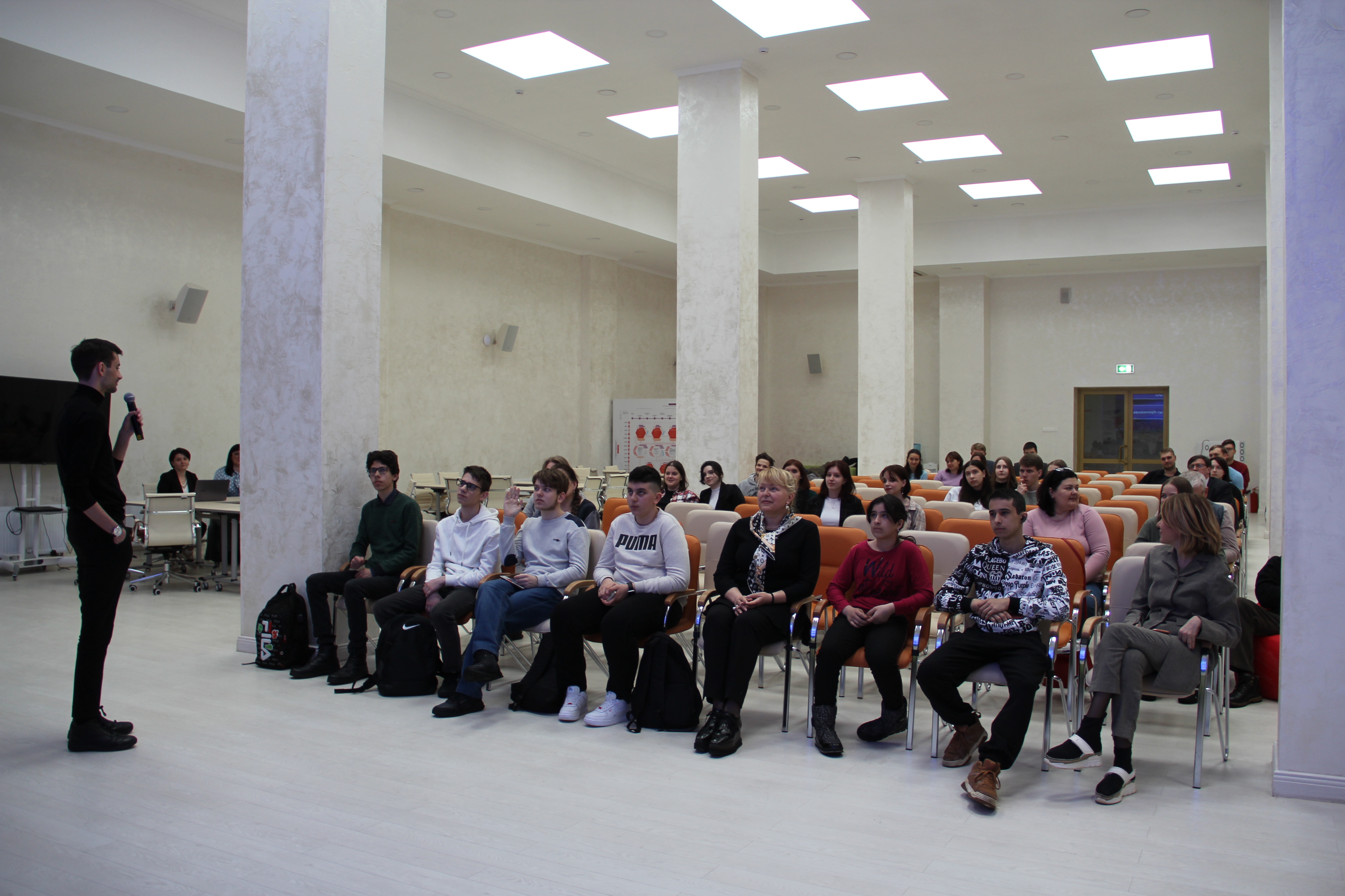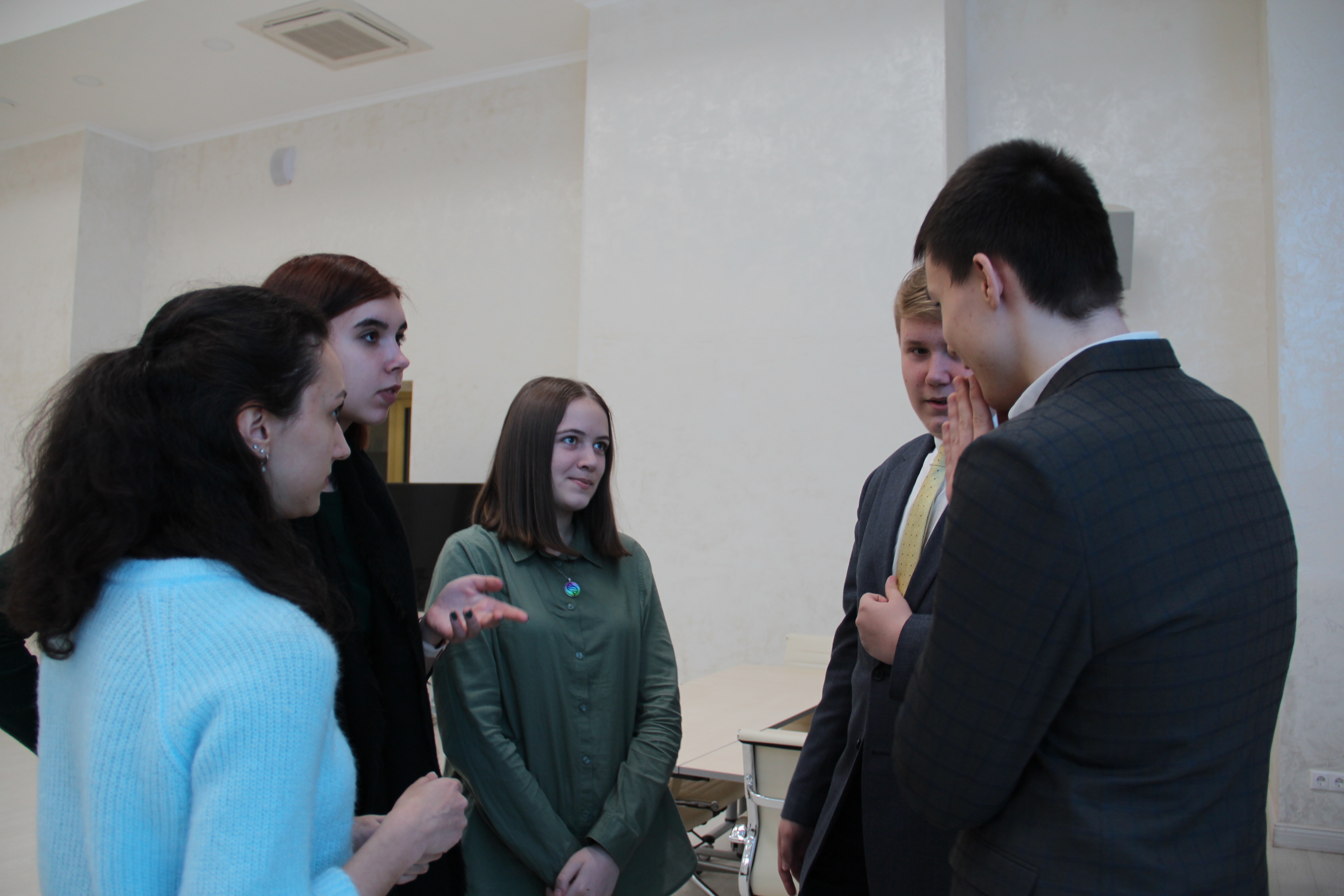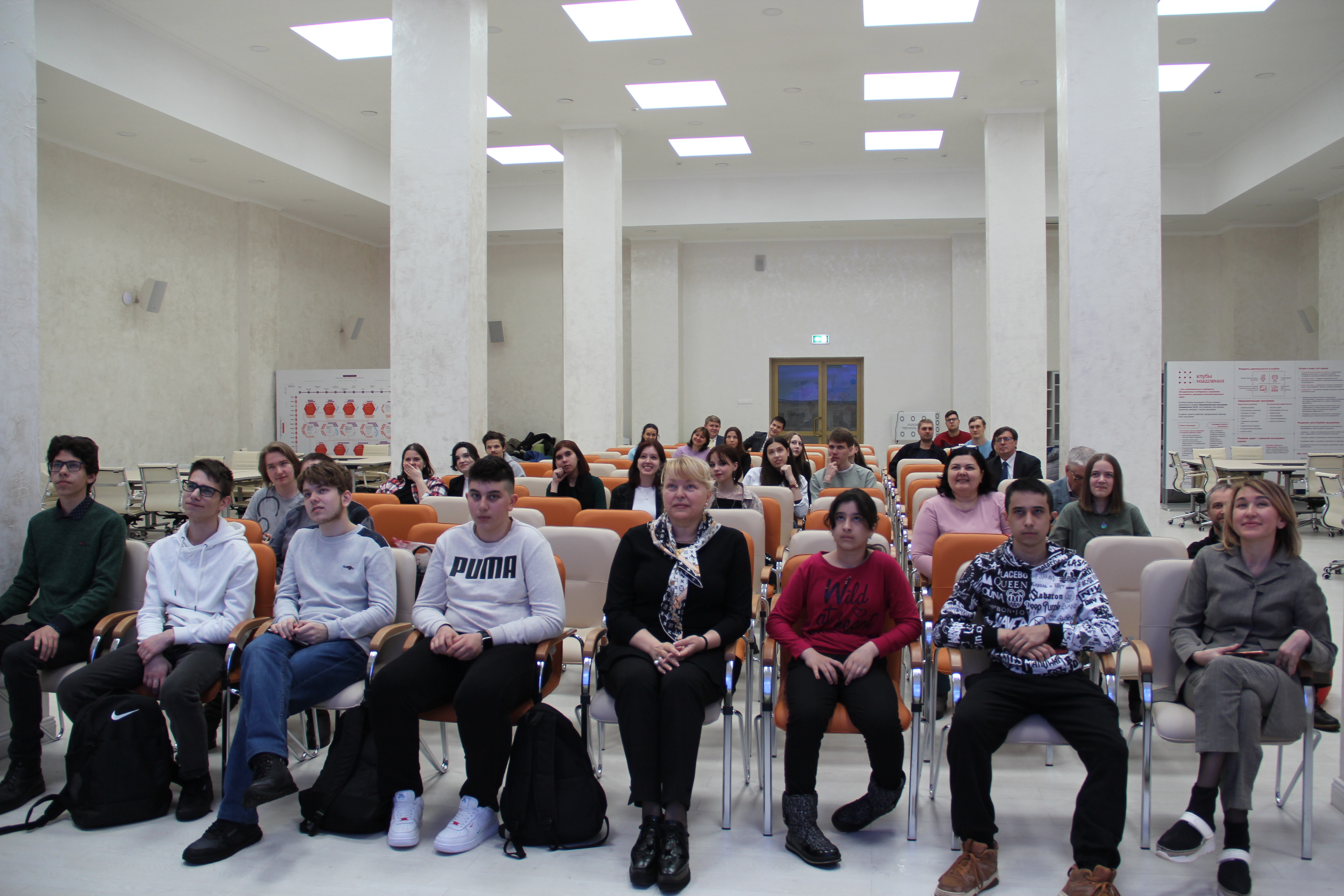 Во второй половине мероприятия ответственный секретарь приёмной комиссии Владислав Игоревич Горностаев рассказал о поступлении в вуз в 2022 году, познакомил будущих студентов с направлениями подготовки в университете, дал исчерпывающую информацию об алгоритме зачисления, минимальном количестве баллов, необходимом для участия в конкурсе, перечне и расписании вступительных экзаменов, проходных баллах за предыдущие годы, количестве бюджетных мест и стоимости обучения.