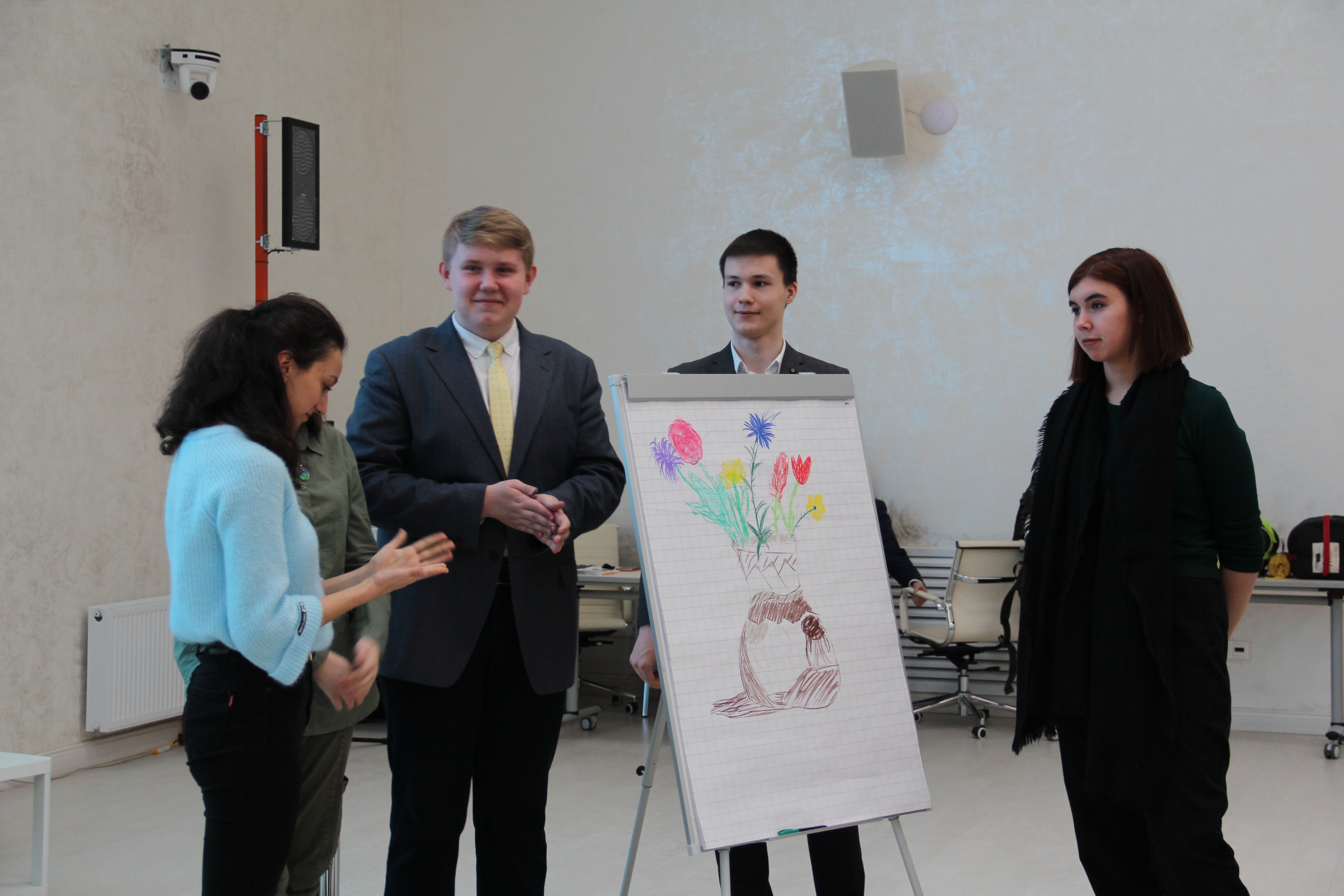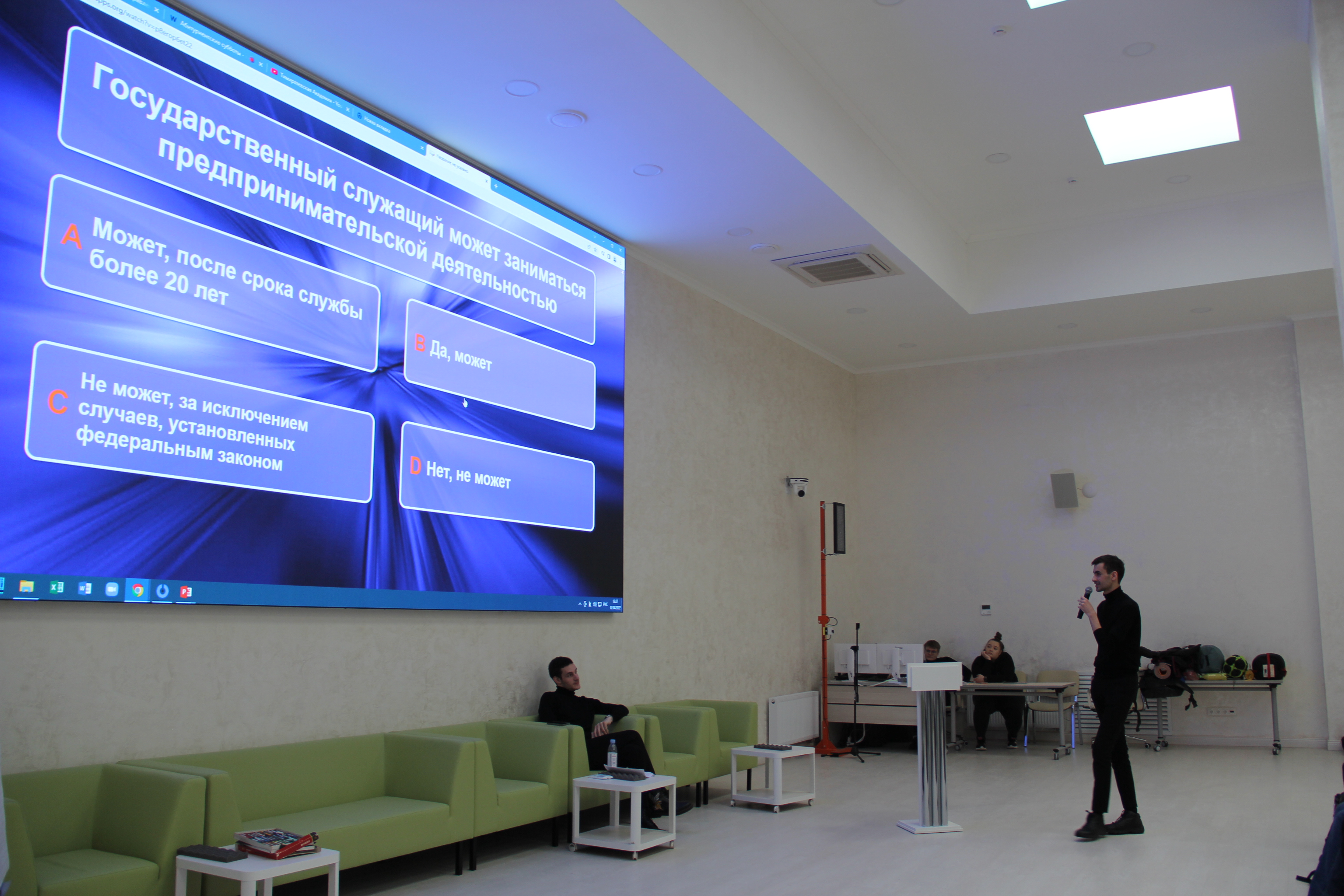 Студенты группы Д-П 404, Гордеев Игорь, Лебедев Максим, Горбачев Алексей, постарались увлекательно и динамично ответить на вопрос «Кто такие профессиональные чиновники или менеджеры высшего разряда?». Они рассказали участникам мероприятия о становлении и развитии системы государственного управления и государственной службы со времен Киевской Руси по настоящее время и провели увлекательную викторину. А в конце ведущие протестировали аудиторию на предмет командного взаимодействия посредством игровых коммуникаций. Эффективность 100%.