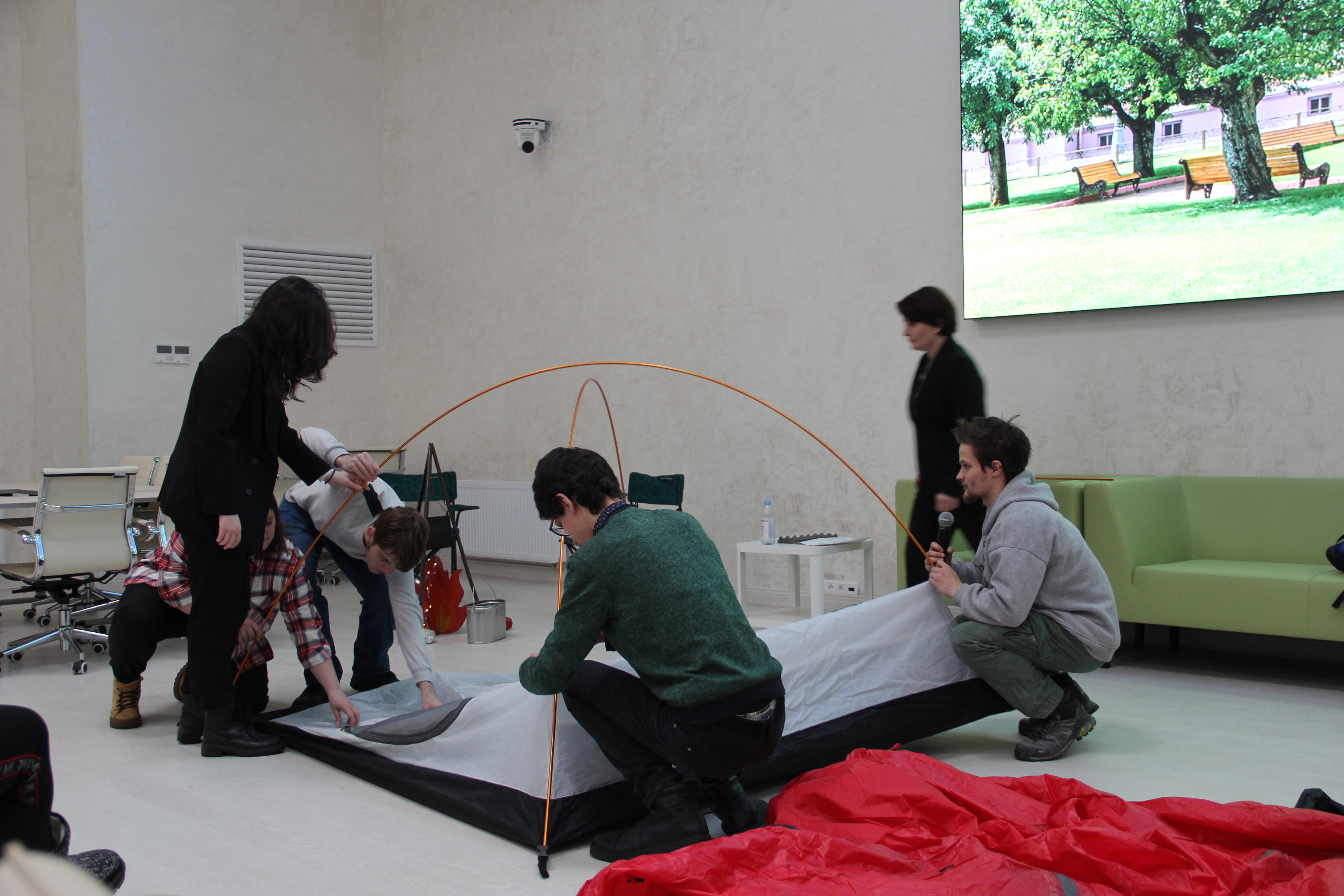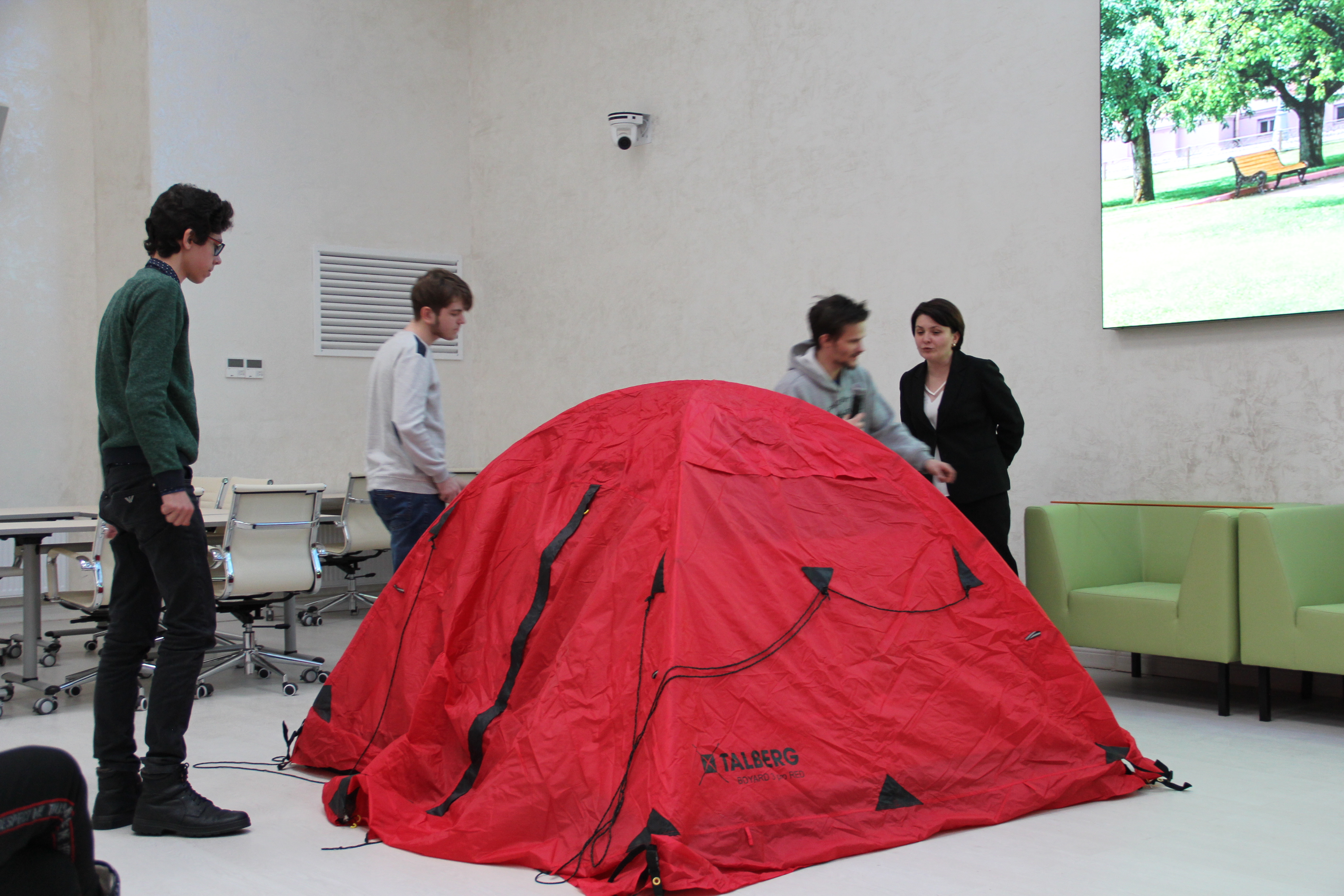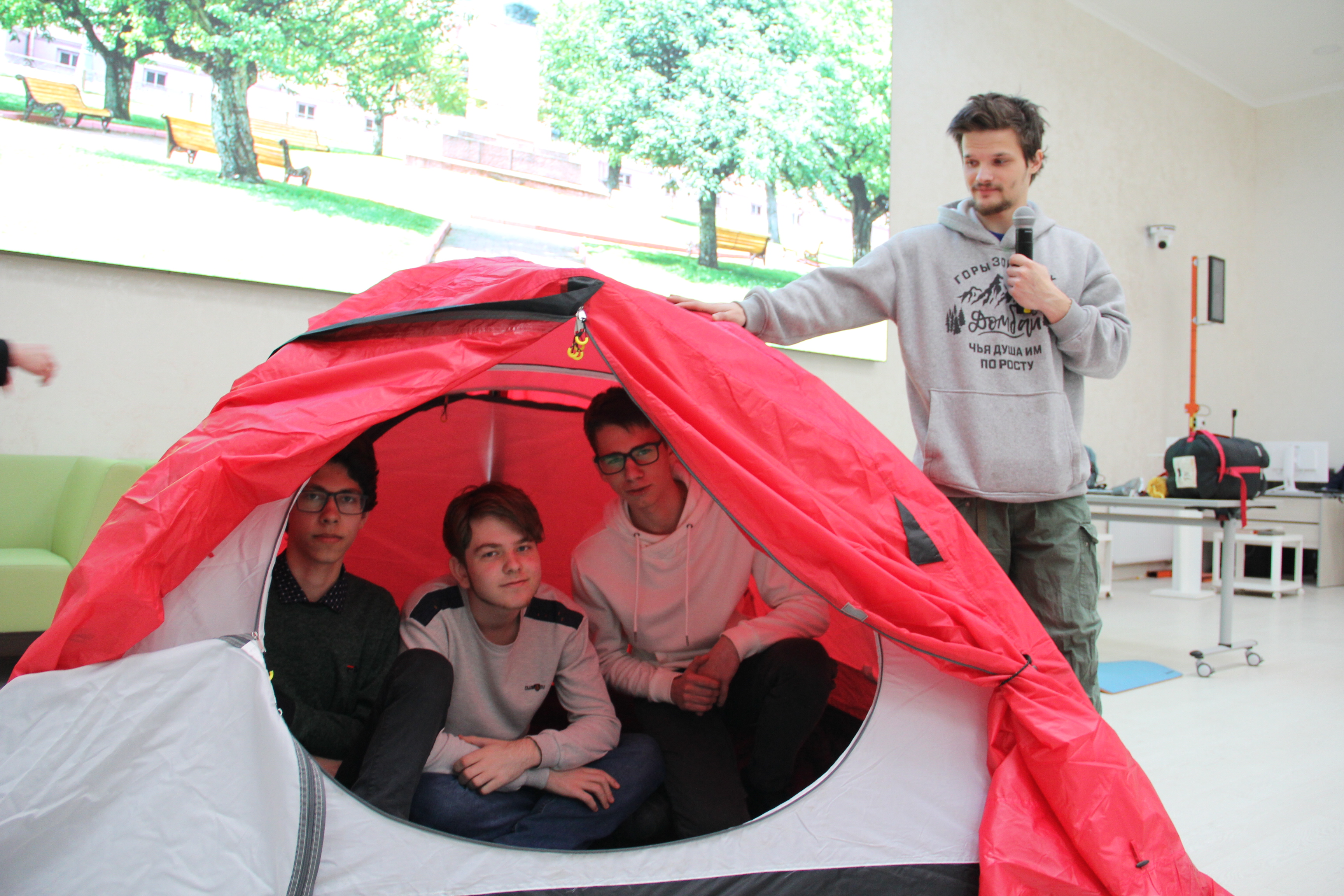 Интригой абитуриентской субботы было проведение практического увлекательного мастер-класса по походному туризму. Председатель турклуба «Ветер» – Ходыкин Иван подробно рассказал ребятам о самых главных моментах туристической жизни - «Как ставить палатку и собирать рюкзак». Участники мастер-класса самостоятельно поставили горную туристическую палатку и с большим удовольствием устроили фото-сессию прямо в ней.