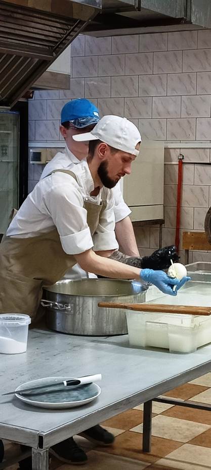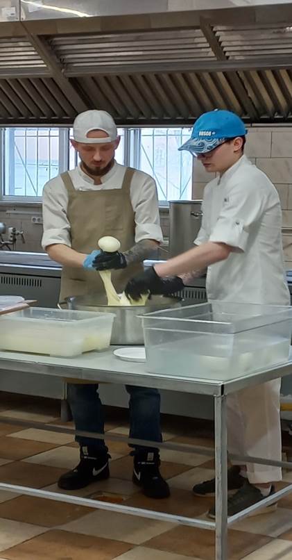 Организаторами мастер-класса были продемонстрированы технологические приемы получения вытяжных итальянских сыров, таких как Моцарелла, Страчателла и Буррата. Присутствующие на мастер-классе абитуриенты принимали активное участие в формировании сыра, вытягивая сырную массу под руководством опытных наставников. После завершения демонстрации технологий моцареллы, страчателлы и бурраты для желающих была организована дегустация, на которой они высоко оценили качество произведенных образцов вытяжных сыров.