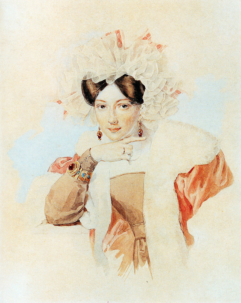 Акварели Врубеля поразили своей оригинальностью и красотой. А знаменитый портрет Натальи Николаевны Гончаровой в бальном платье исполнил брат автора «последнего дня Помпеи» - Александр Брюллов.