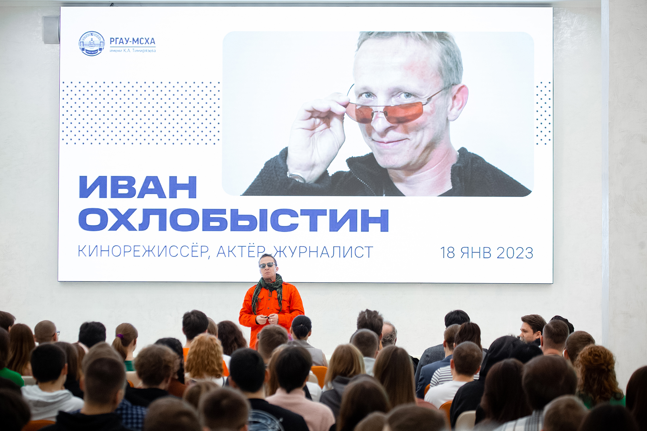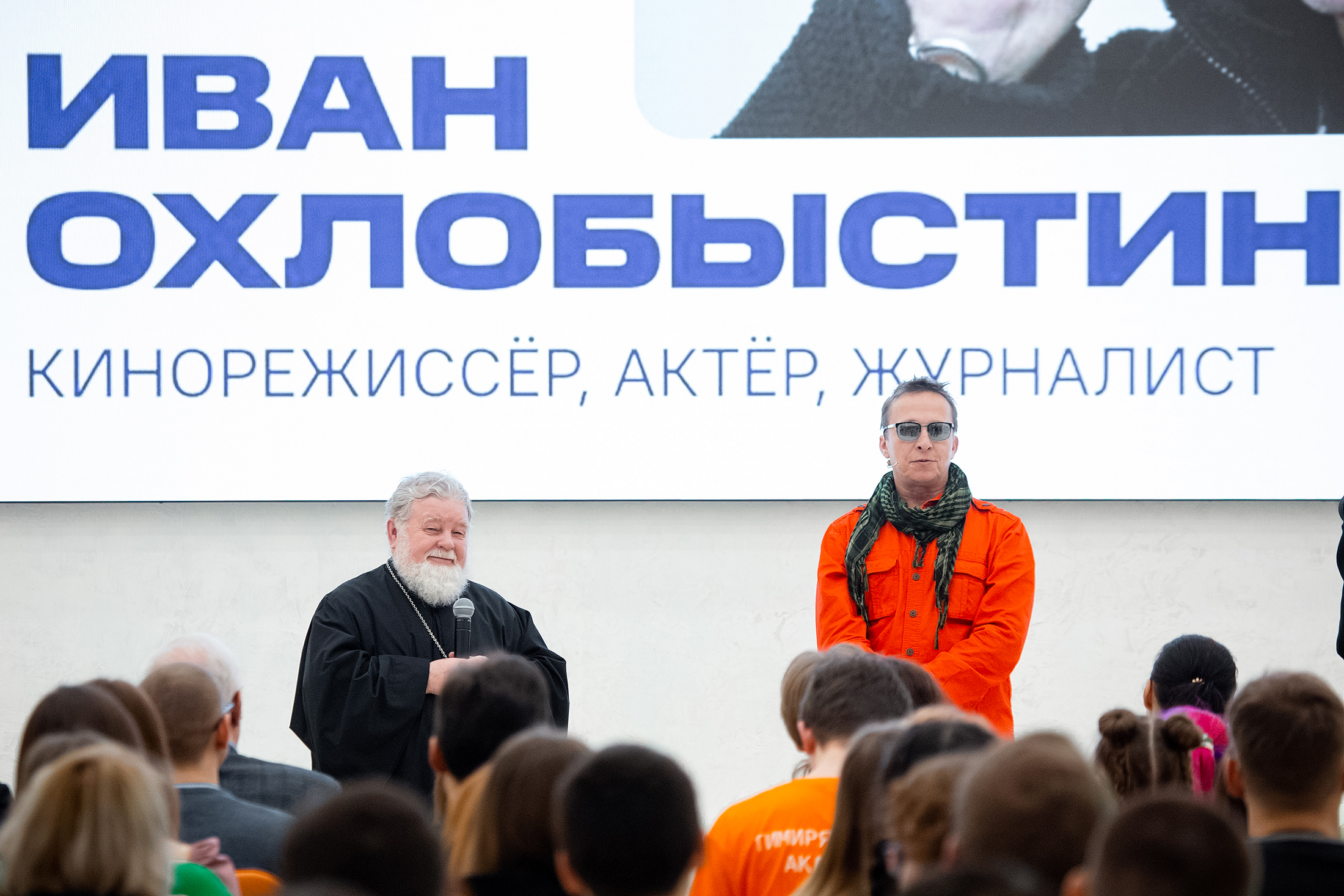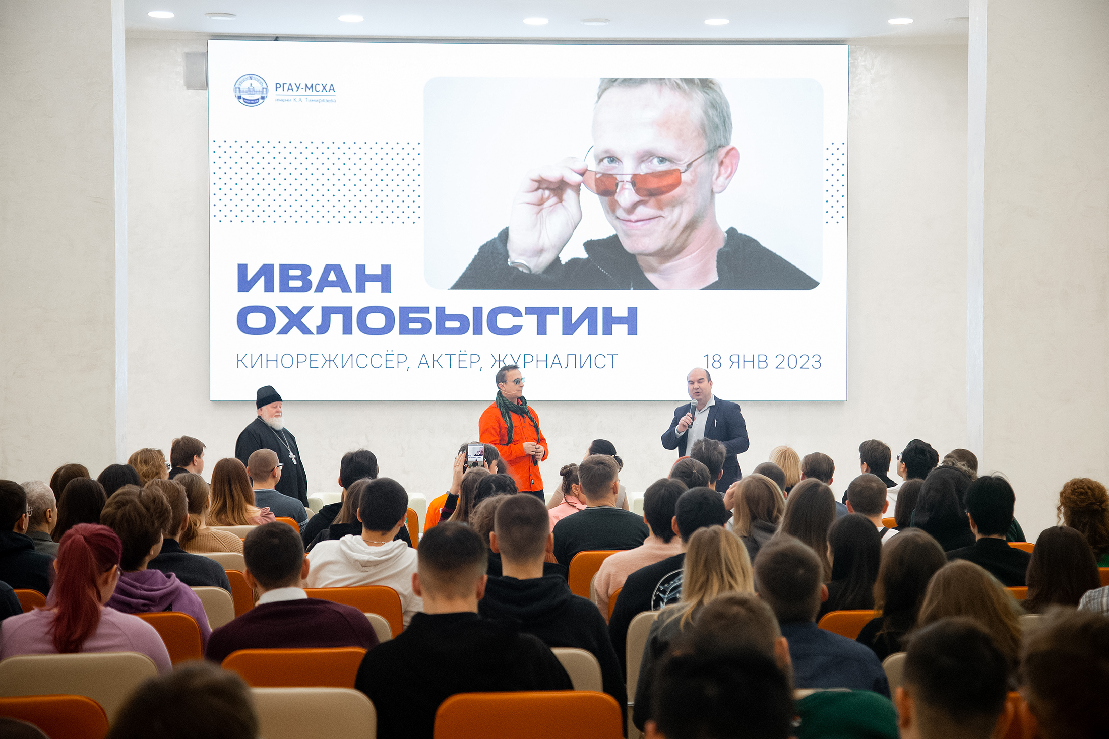 На встрече со студентами Тимирязевской академии актёр, кинорежиссёр, сценарист и писатель Иван Иванович Охлобыстин обсудил самые разные темы – кино, жизненные взгляды, что вдохновляет и помогает не терять энтузиазма. Мероприятие с участием известного кинематографиста состоялась на площадке «Точки кипения» и собрало около 200 участников.