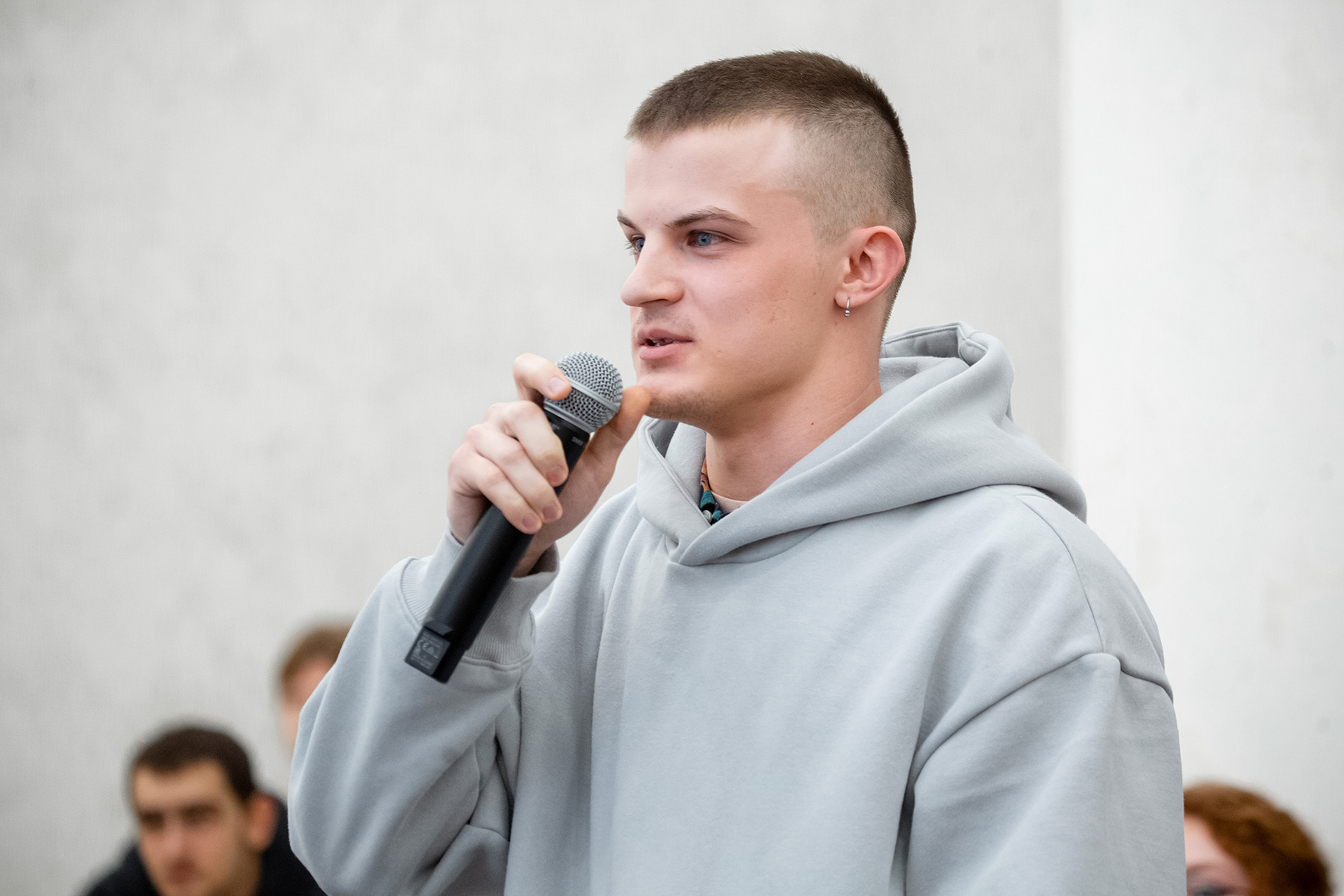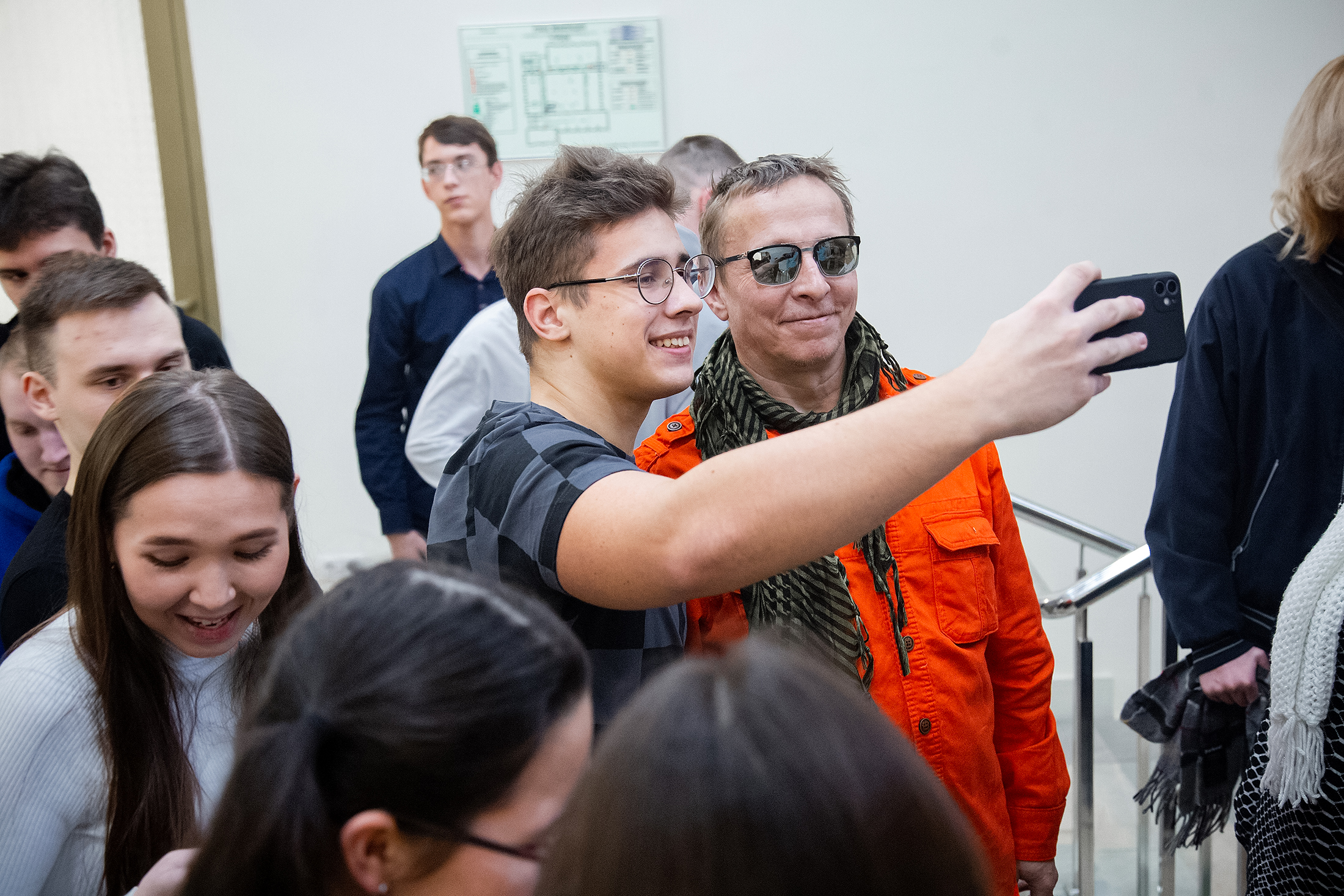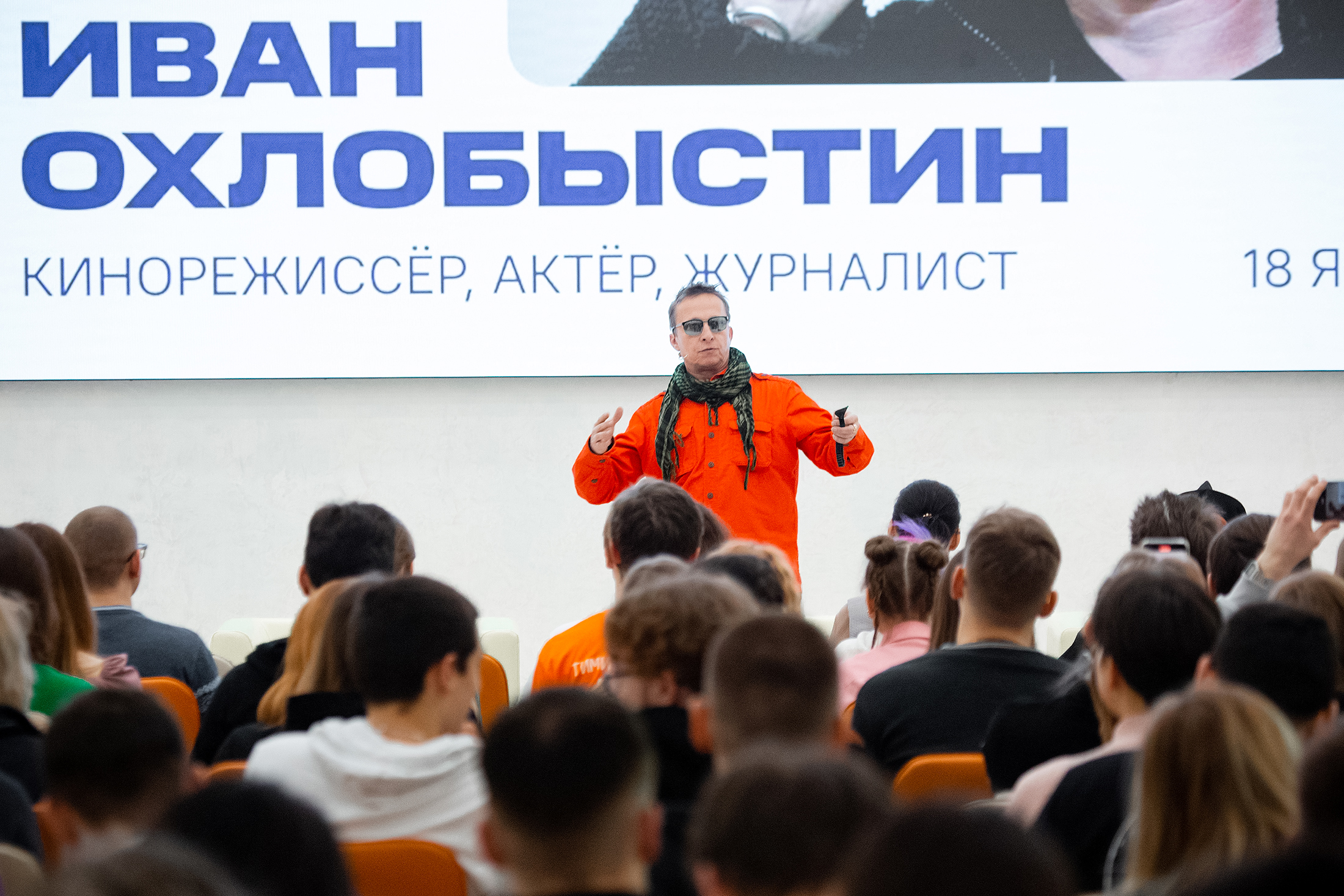 Встреча с известным кинематографистом проходила в формате живого диалога. Студенты воспользовались возможностью задать И.И. Охлобыстину вопросы на самые разные темы: о кино, о жизненных взглядах, о том, что вдохновляет и помогает не терять энтузиазма.