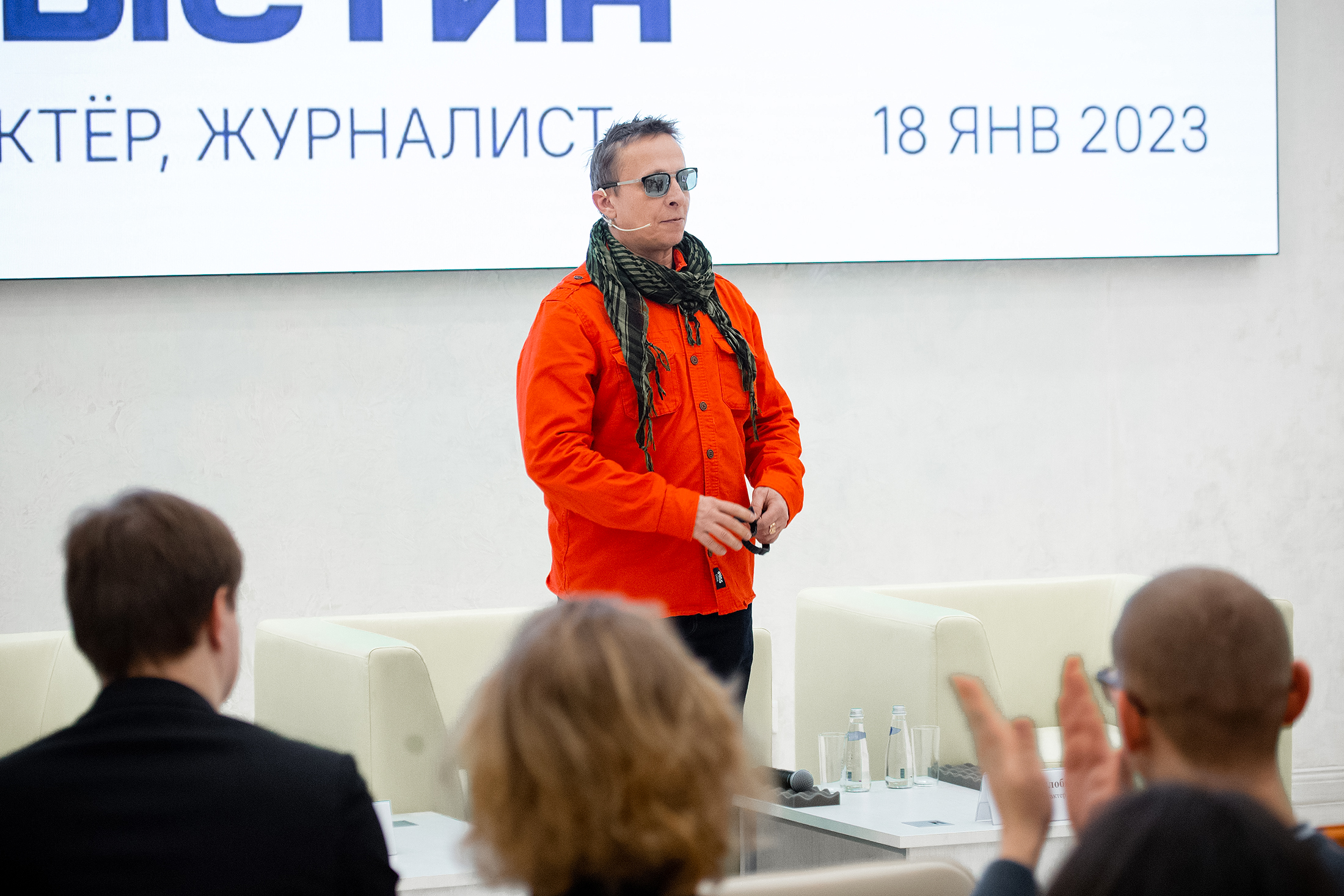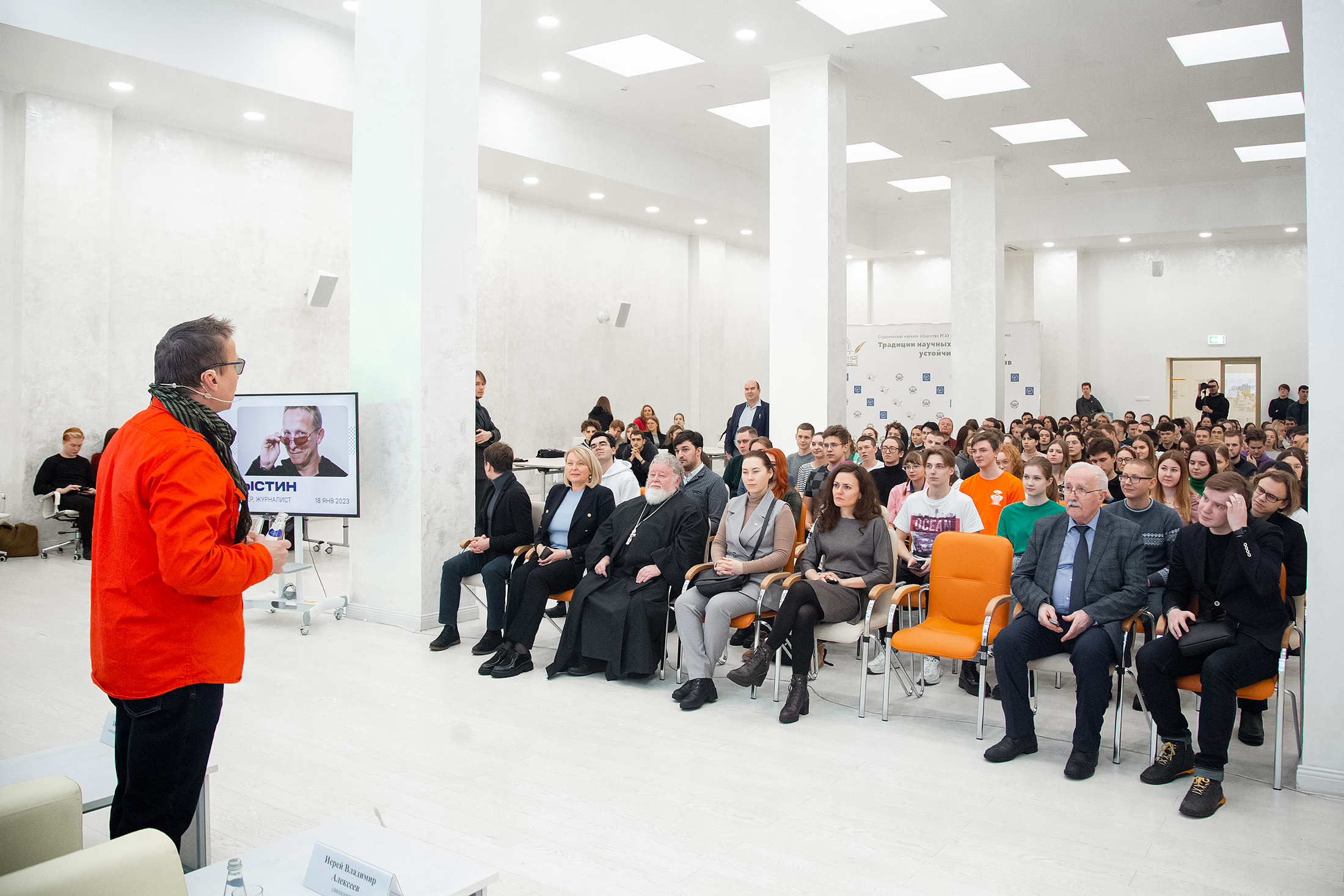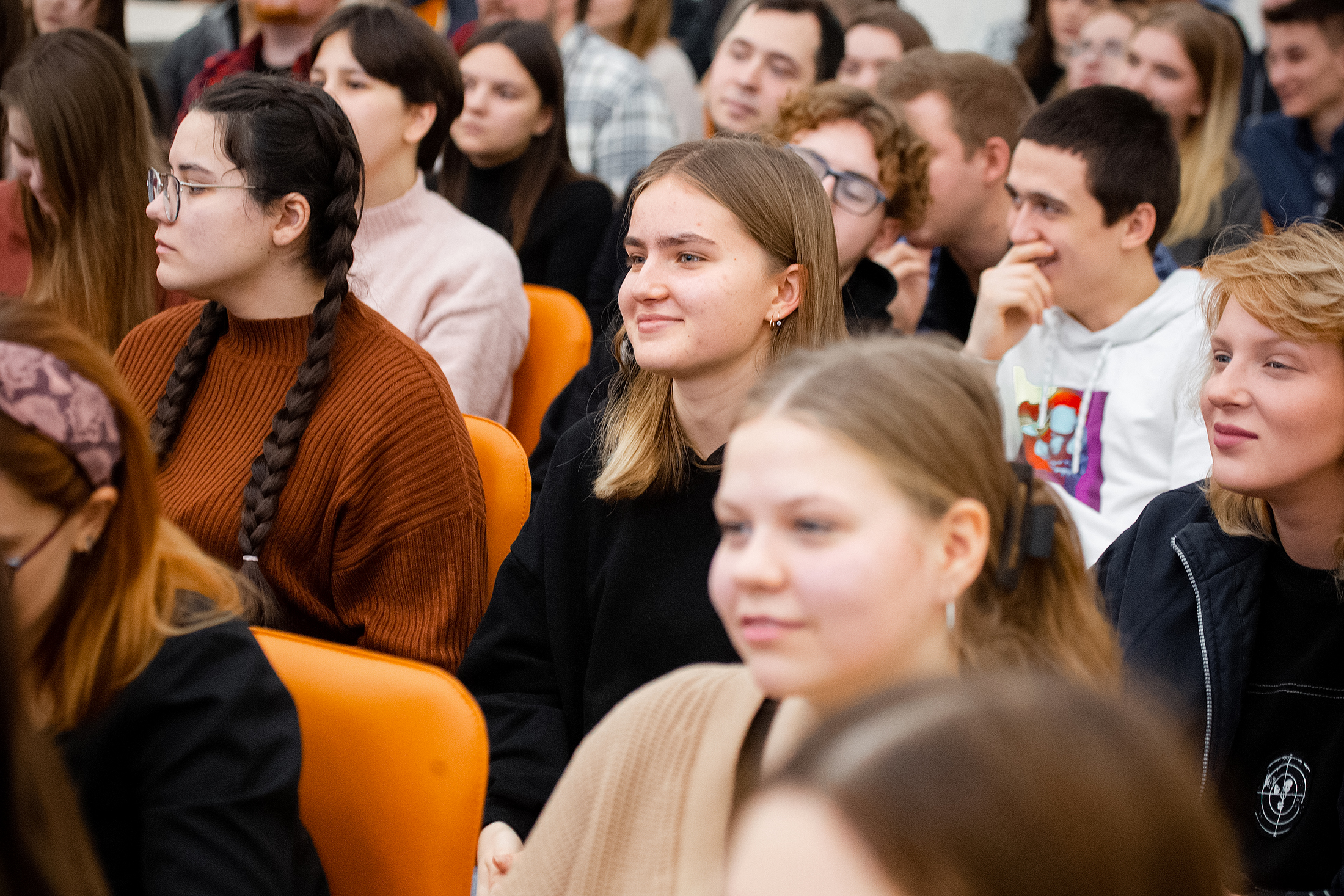 Встреча с известным кинематографистом проходила в формате живого диалога. Студенты воспользовались возможностью задать И.И. Охлобыстину вопросы на самые разные темы: о кино, о жизненных взглядах, о том, что вдохновляет и помогает не терять энтузиазма.