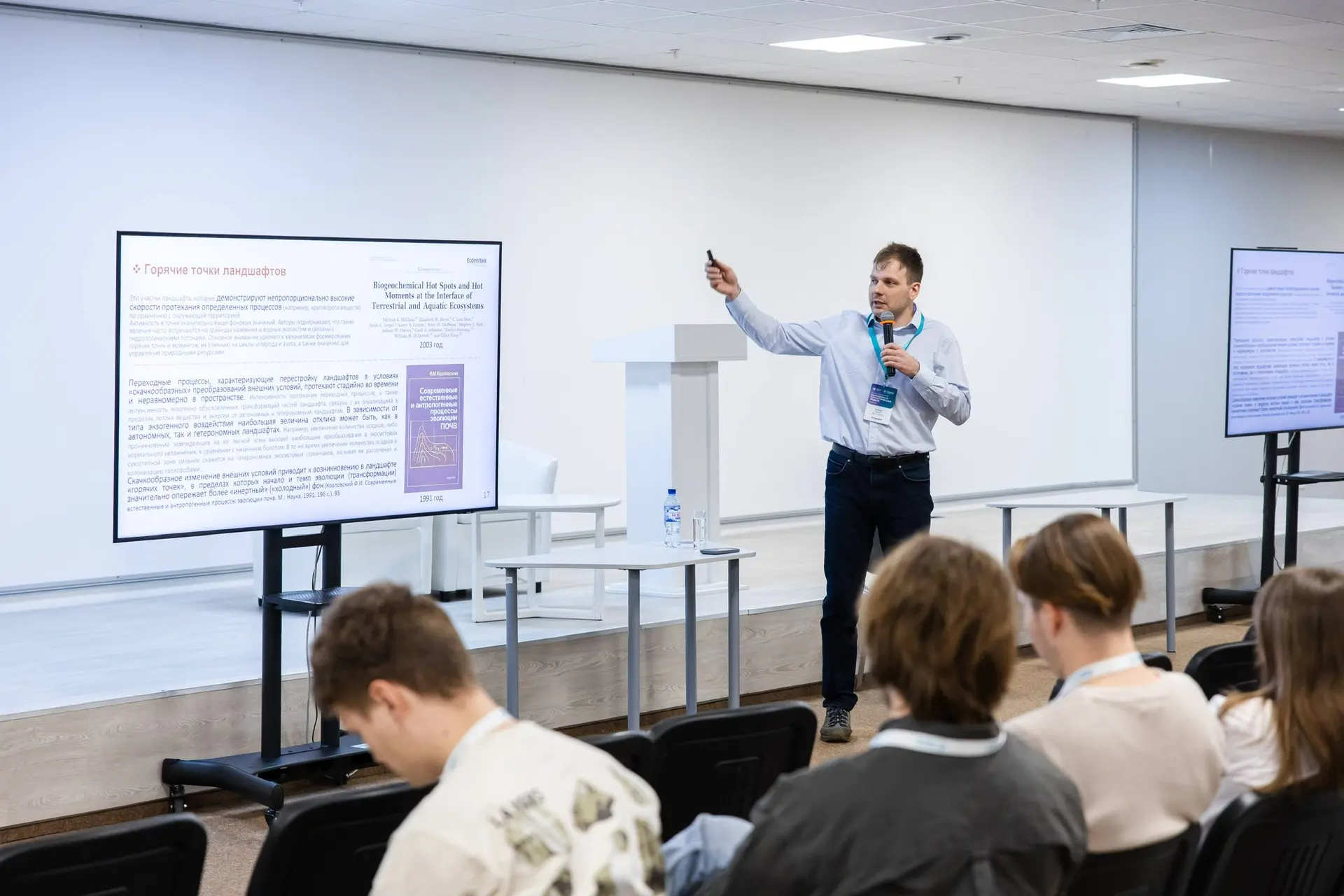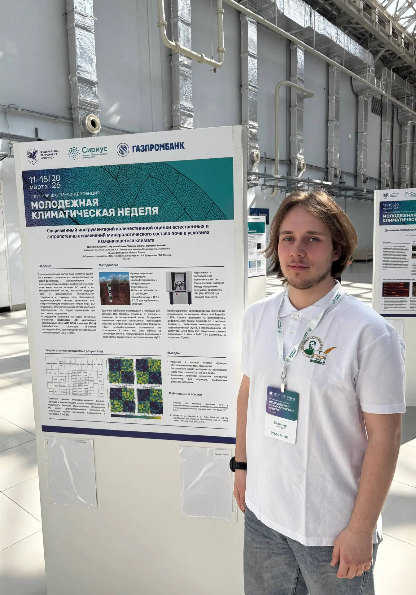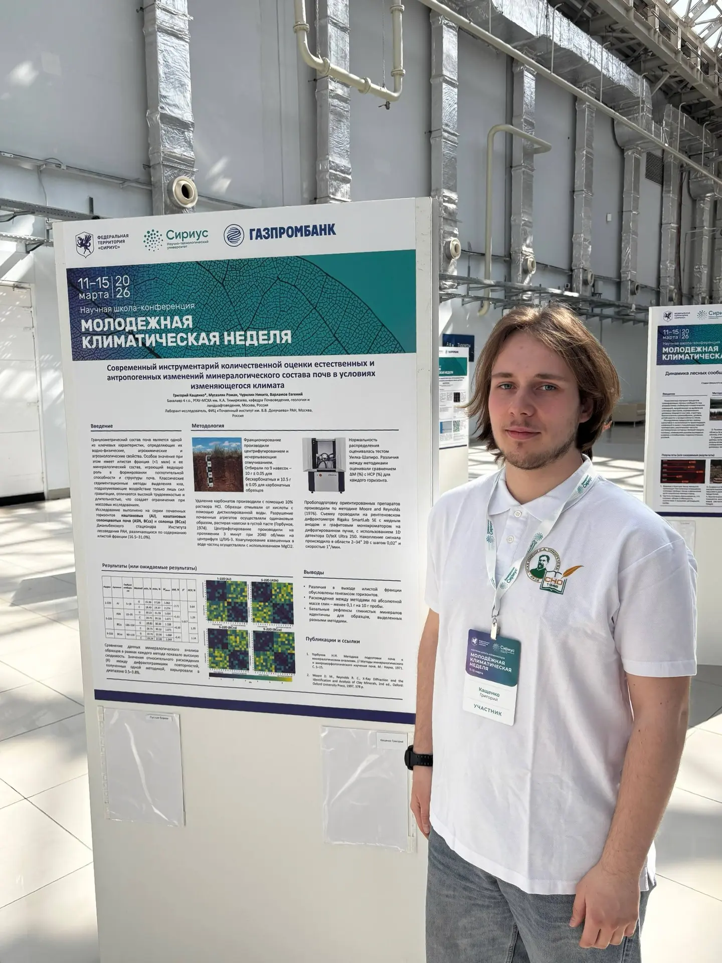 Особое внимание заслуживает выступление Григория Кащенко, который представил свой доклад на тему: «Современный инструментарий количественной оценки естественных и антропогенных изменений минералогического состава почв в условиях изменяющегося климата». Исследование Григория вызвало живой профессиональный интерес у аудитории и получило высокие оценки экспертов. Его доклад был признан одним из лучших на мероприятии.