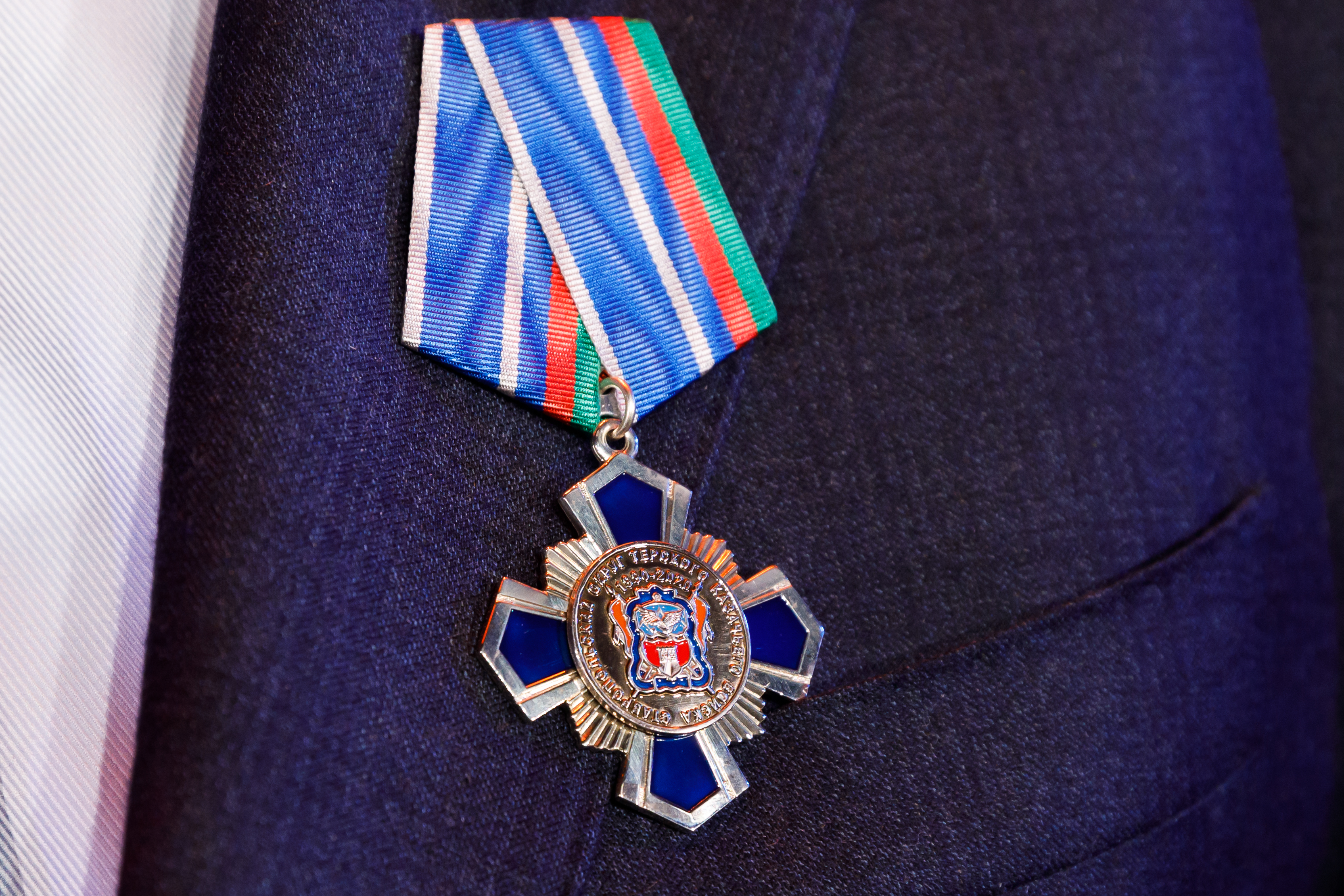 С.Н. Тарасов вручил ректору университета награду Ставропольского окружного казачьего общества «Терское войсковое казачье общество» за активное содействие возрождению казачества России, значительный вклад в дело его государственного становления на Ставрополье - медаль «З0 лет возрождения казачества Ставрополья».