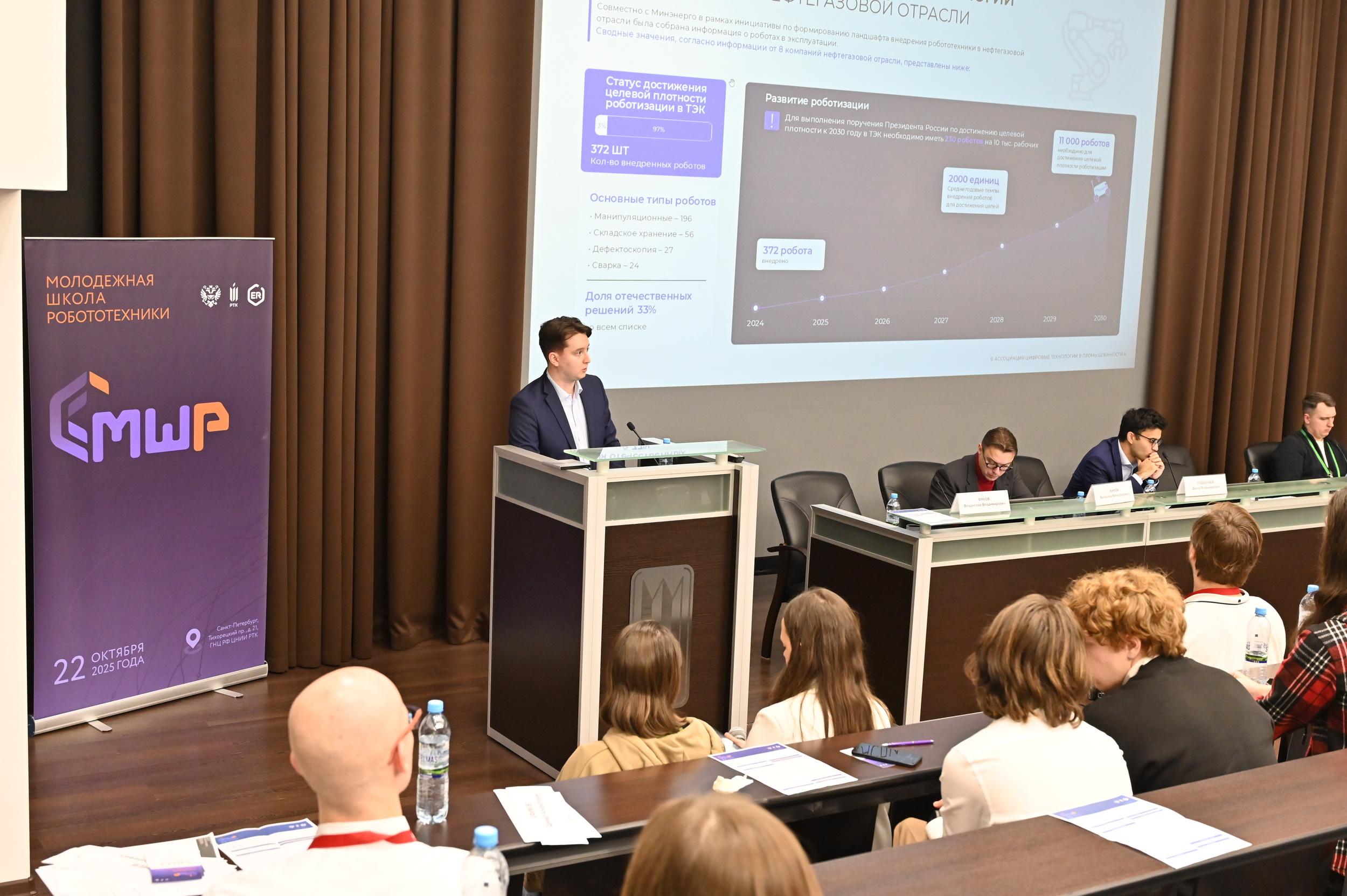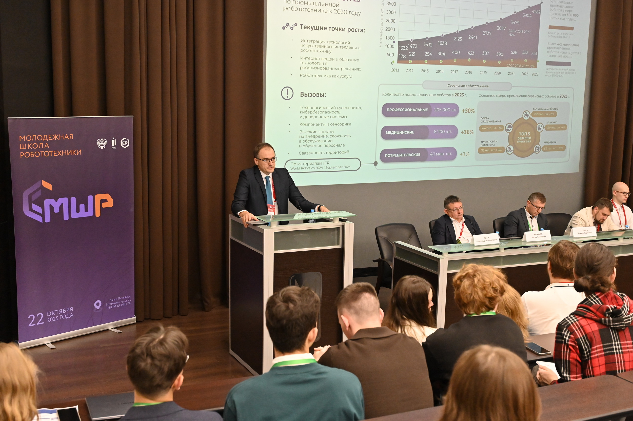 22 октября 2025 года в г. Санкт-Петербурге, в рамках 36-й Международной научно-технической конференции «Экстремальная робототехника», организованной Государственным научным центром Российской Федерации – ЦНИИ Робототехники и технической кибернетики, состоялась работа секции «Молодежная школа робототехники»