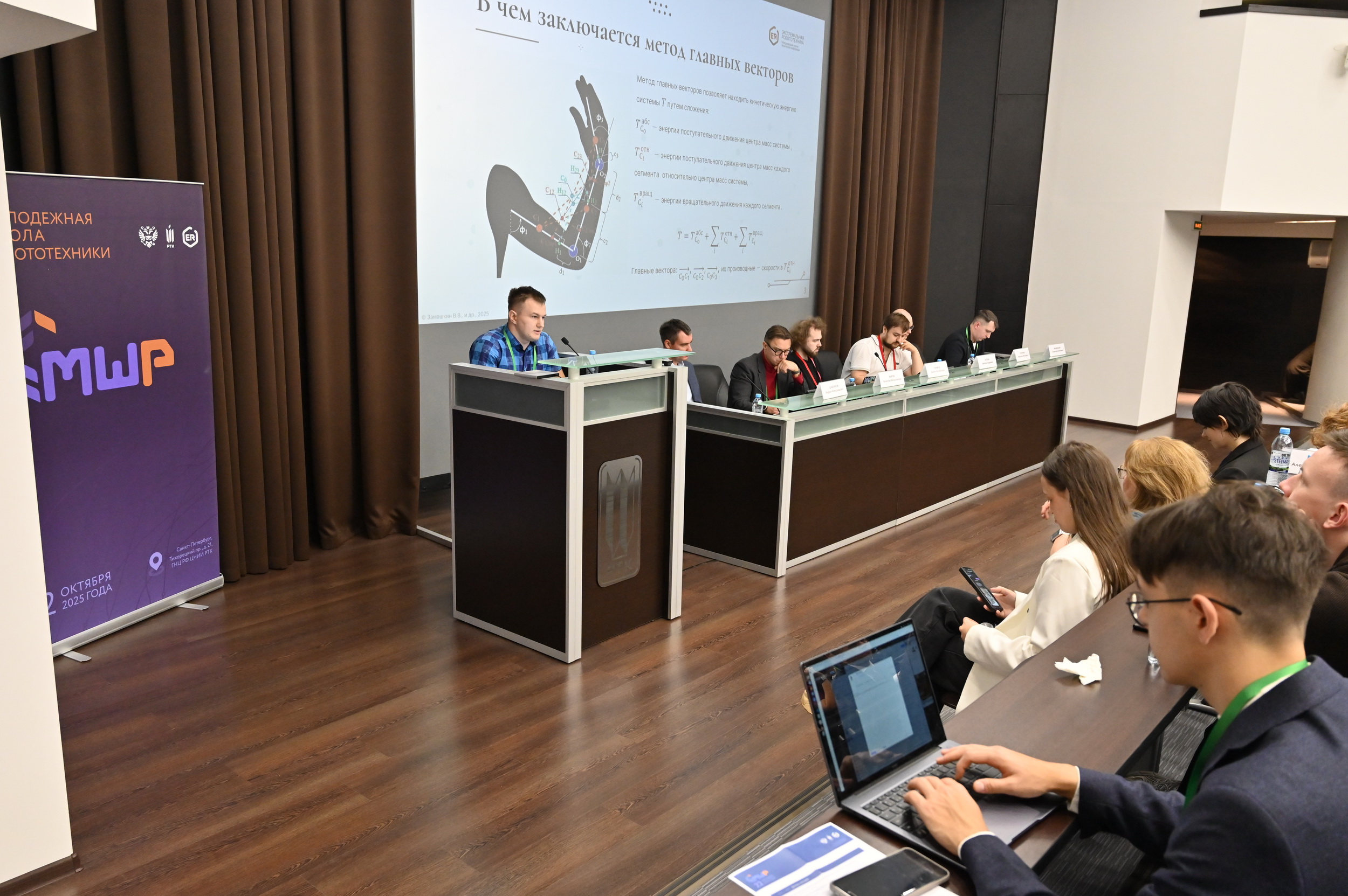 В рамках заседания было представлено более десяти предварительно отобранных научных докладов участников из ведущих инженерных и технических вузов страны, среди которых — МФТИ, НИУ «МЭИ», НИУ ИТМО, СПбГУАП, Нижегородский государственный университет имени Н.И. Лобачевского и другие. Тематика выступлений охватывала широкий спектр направлений: от разработки экзоскелетов и коллаборативных роботов до систем машинного зрения и мобильных платформ.