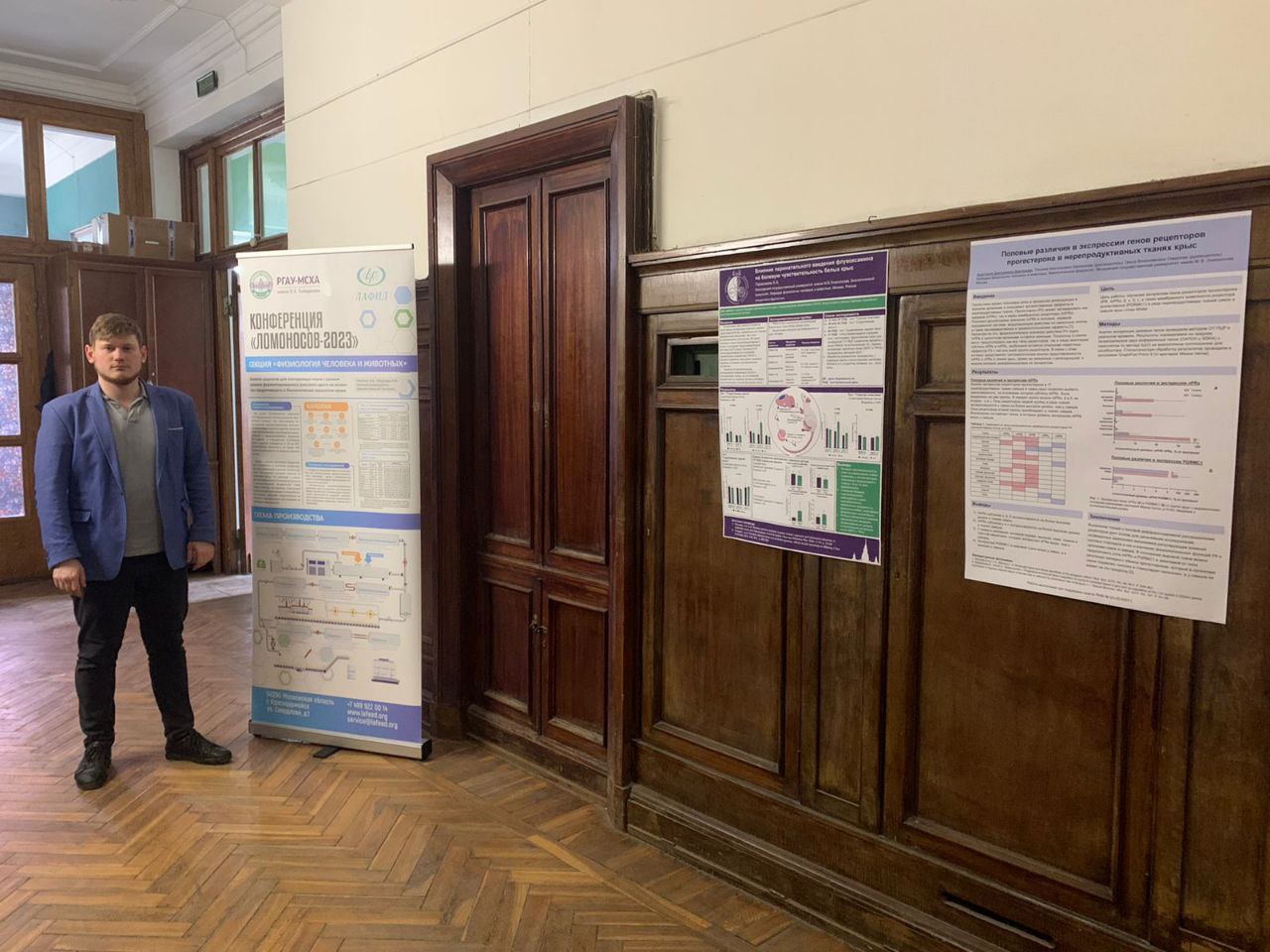 Они выступили в секции "Физиология человека и животных" со стендовым докладом на тему: «Влияние рационов для лактирующих коров с разным уровнем ферментированного рапсового шрота на молочную продуктивность и биохимические показатели крови».