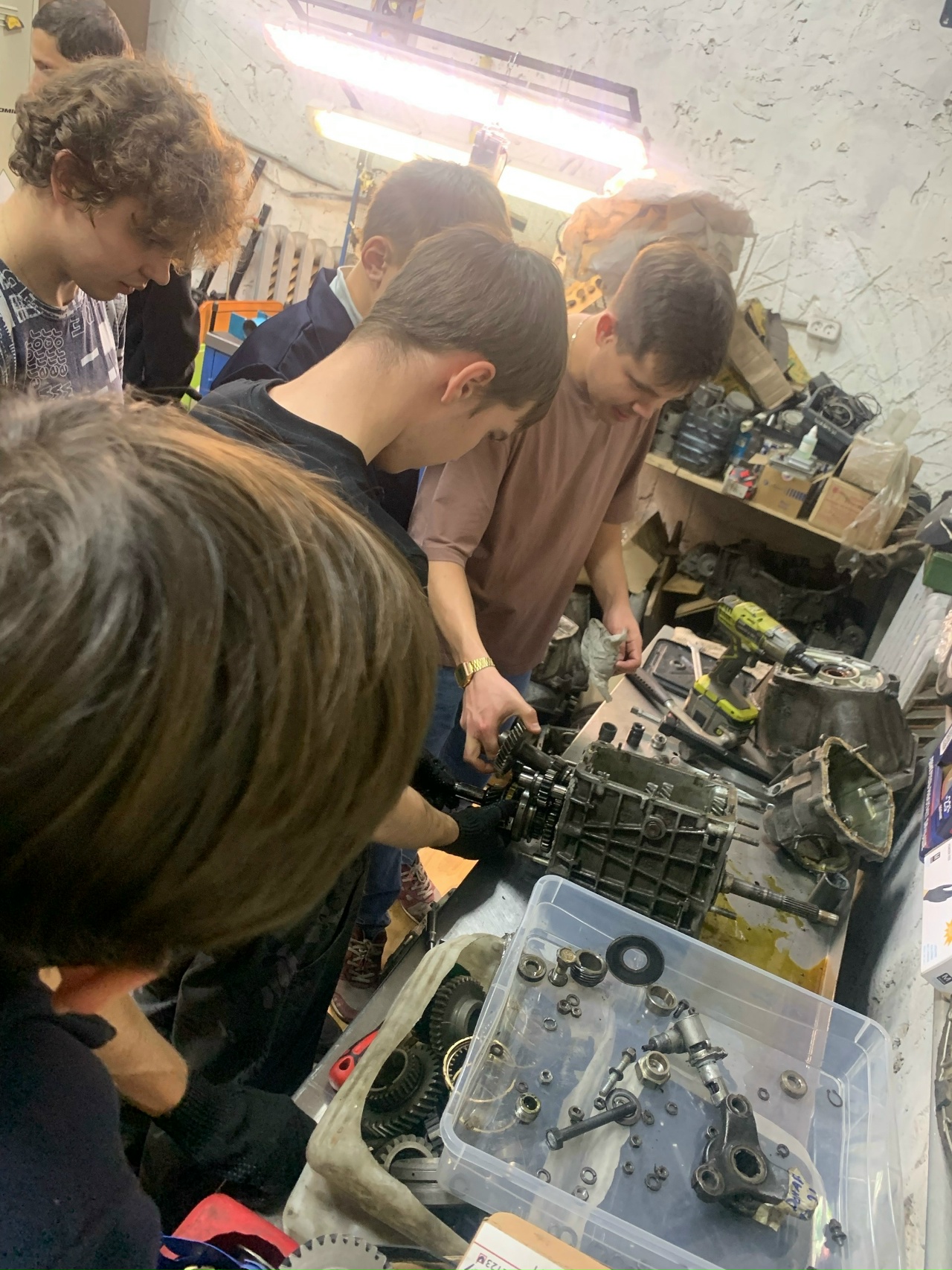 На автомобиле ВАЗ-2105 под управлением выпускника ИМЭ им. В.П. Горячкина и наставника Виталия Стопкина выполнен полный цикл технической подготовки спортивного автомобиля. Проведены работы по замене технических жидкостей, установке нового впускного коллектора и регулировке системы зажигания. Студенты под руководством наставников самостоятельно разобрали, отдефектовали, заменили необходимые детали, собрали и установили коробку переключения передач обратно на машину.