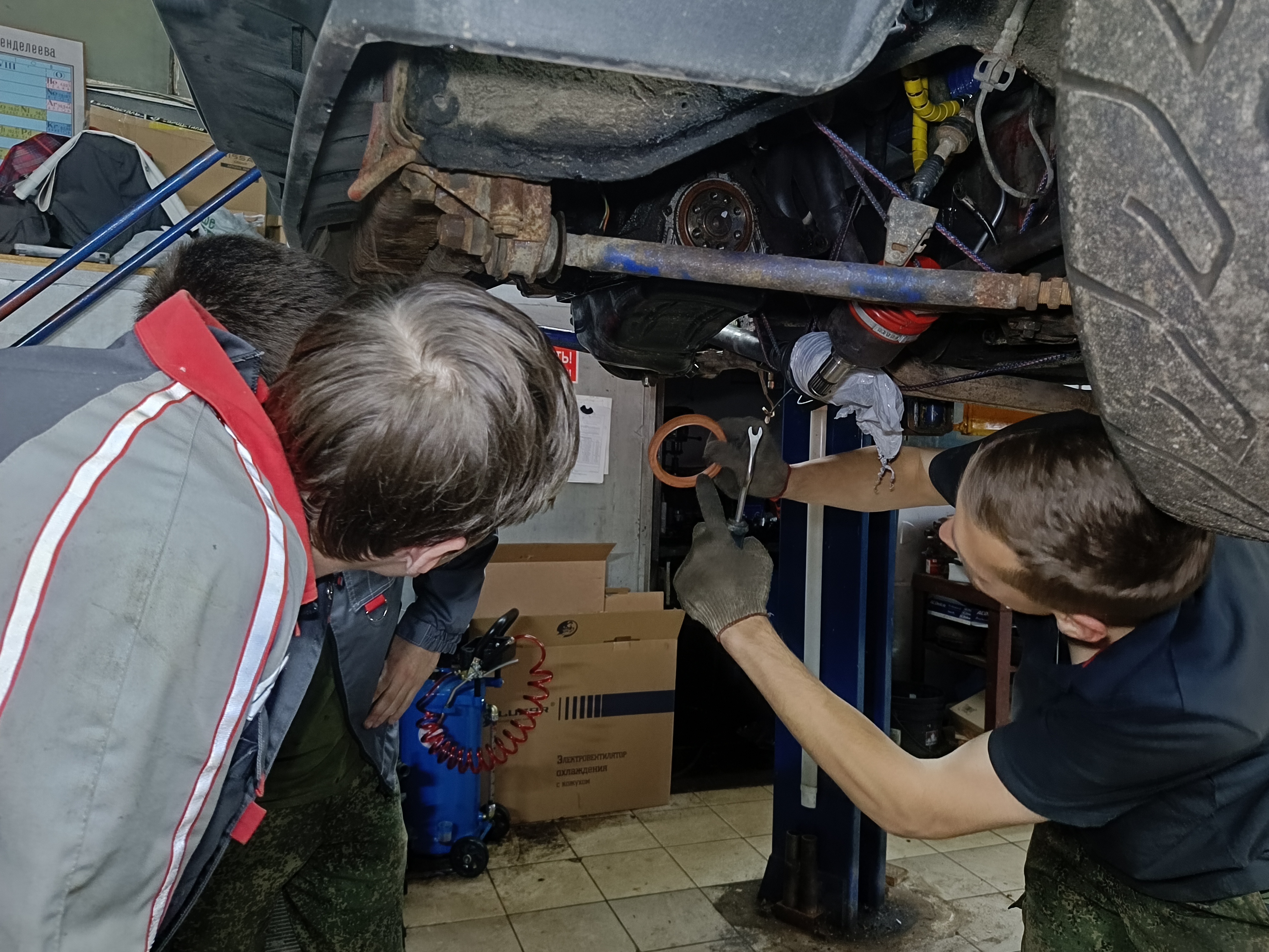 На автомобиле ВАЗ 2108 после финиша прошлого этапа потребовалась замена сцепления. При разборе обнаружено разрушение корзины и диска. Диагностика, проведенная силами студентов, выявила основную причину неисправности: отсутствие центрующих втулок коробки передач, что привело к несоосности КПП и коленчатого вала. Параллельно решили вопрос с большими люфтами кулисы переключения передач, вызванная повреждением штока КПП из-за предыдущего неквалифицированного ремонта. Студенты-механики «Вектора» под руководством кураторов провели полный ремонт коробки передач с проверкой всех допусков в соответствии с технической документацией.