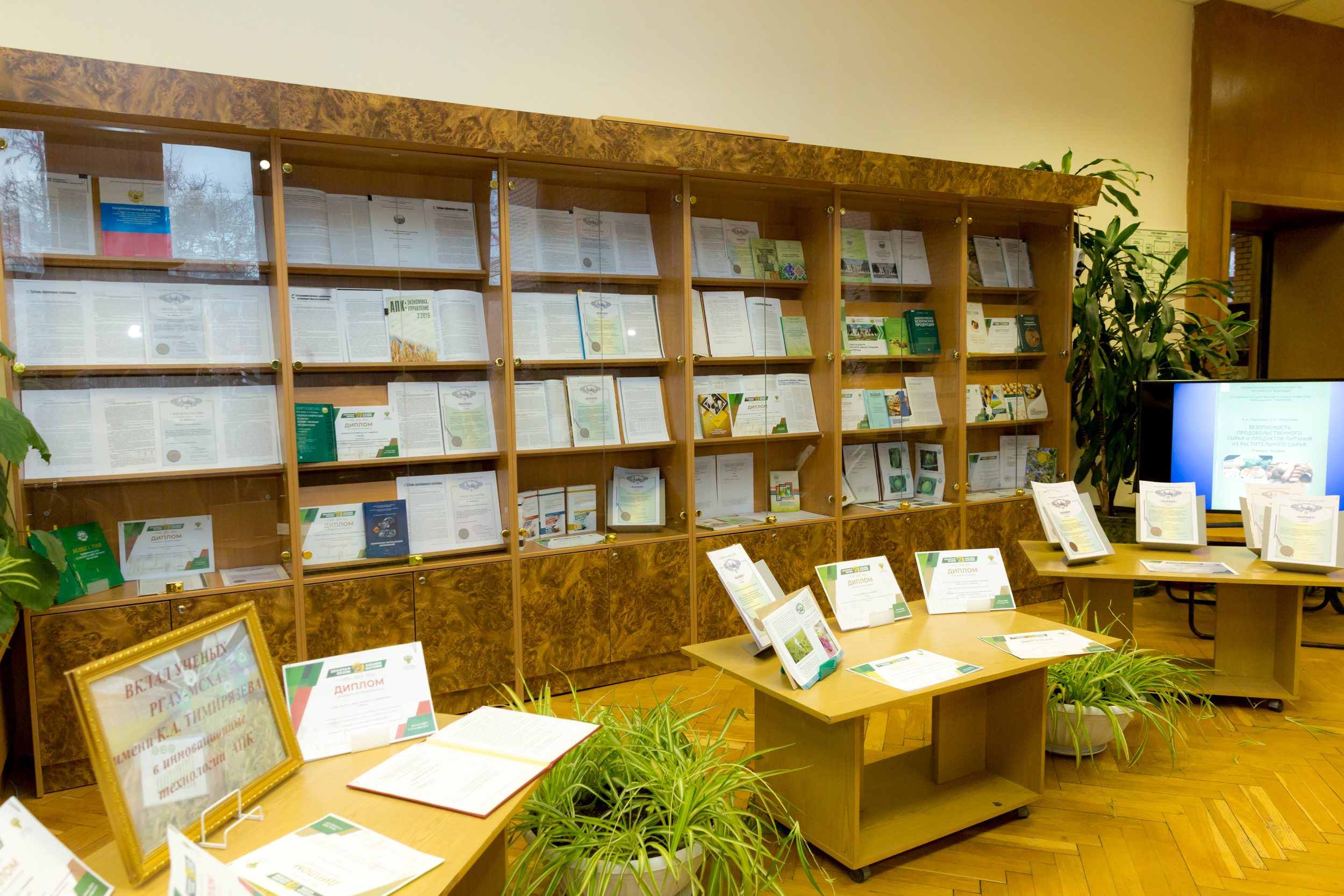 Гости ознакомились с выставками, которые организованы в эти дни в библиотеке. Экспозиции посвящены прошлому, настоящему и будущему Тимирязевки.