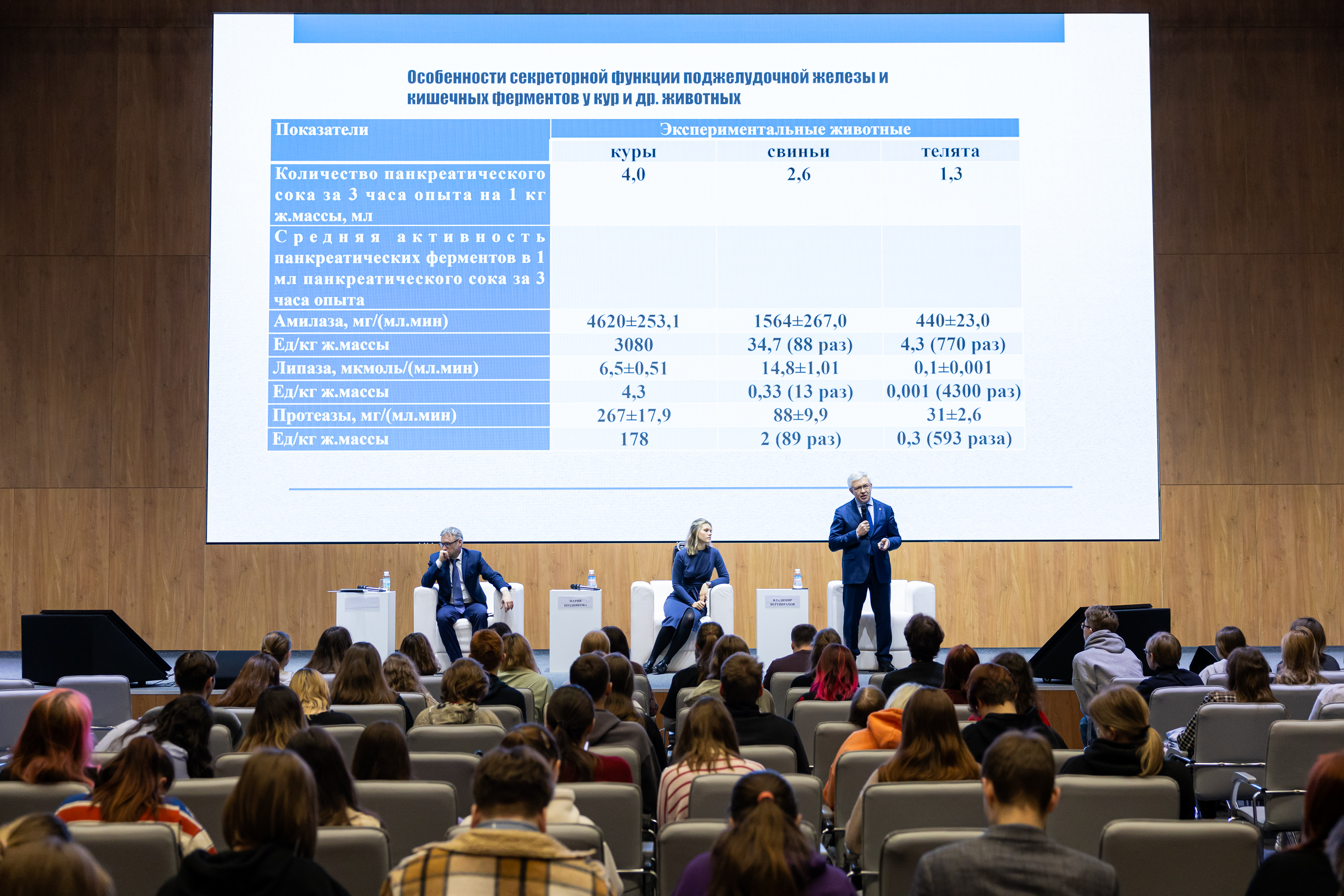 Научно-образовательный лекторий в учебно-выставочном пространстве «Тимирязев Центр» с участием ведущих ученых и специалистов АПК продолжает свою работу. Сегодня более 120 студентов института зоотехнии и биологии получили возможность узнать о питании как об основе здоровья, благополучия и долголетия животных.