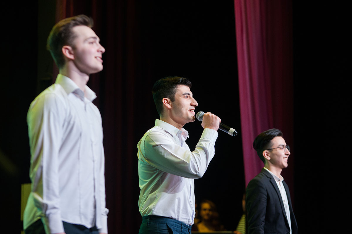 Песня «Ромашковые поля» прозвучала для всех влюблённых и для тех, кто только мечтает найти свою любовь. Песня «Там нет меня» в исполнении Екатерины Кардаш, танцы «Young and Beautiful» и «Вальс» всколыхнули в сердцах присутствовавших нежные чувства. Стихотворение собственного сочинения «Три звезды» исполнил Иван Закревский. Студент, поэтический талант которого запомнился многим еще с осеннего фестиваля, вновь поразил зал. Колорит народных танцев: казахского, финского и русского, а также народно-инструментальная композиция «Ах, вы сени» - произвели сильное впечатление и доказали, что объединившийся актив трёх факультетов отлично взаимодействует!