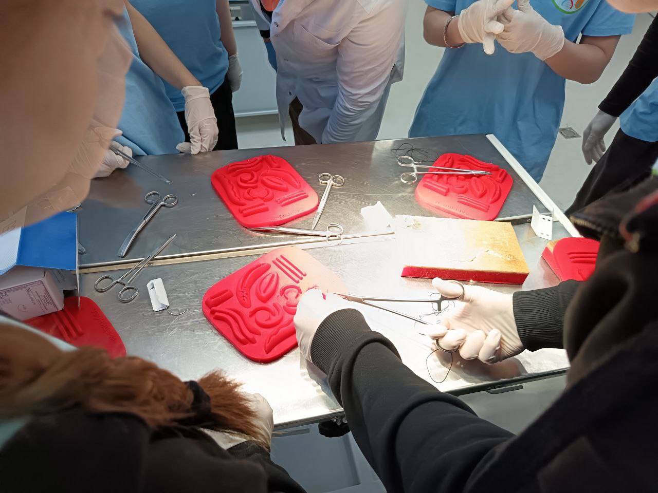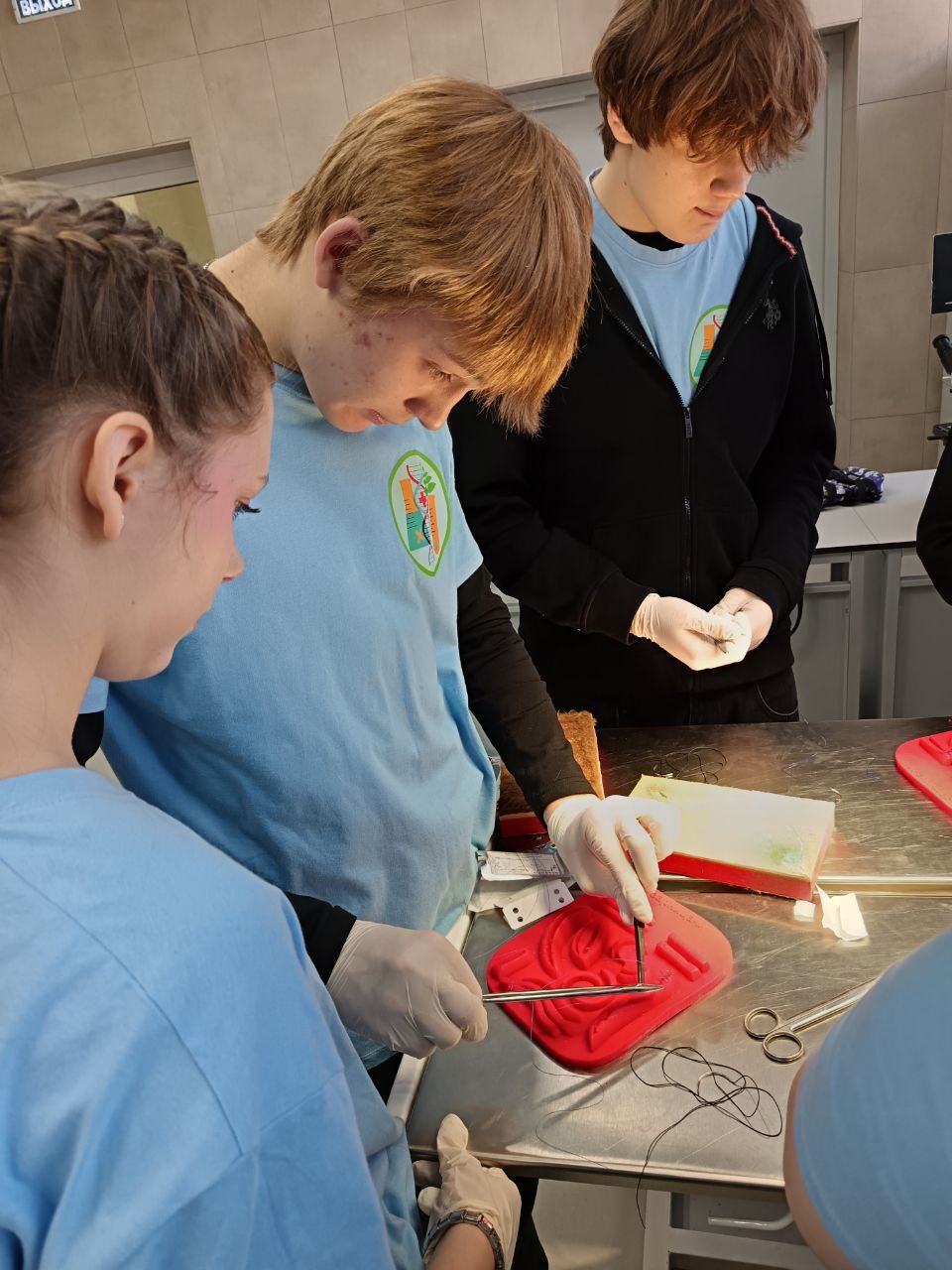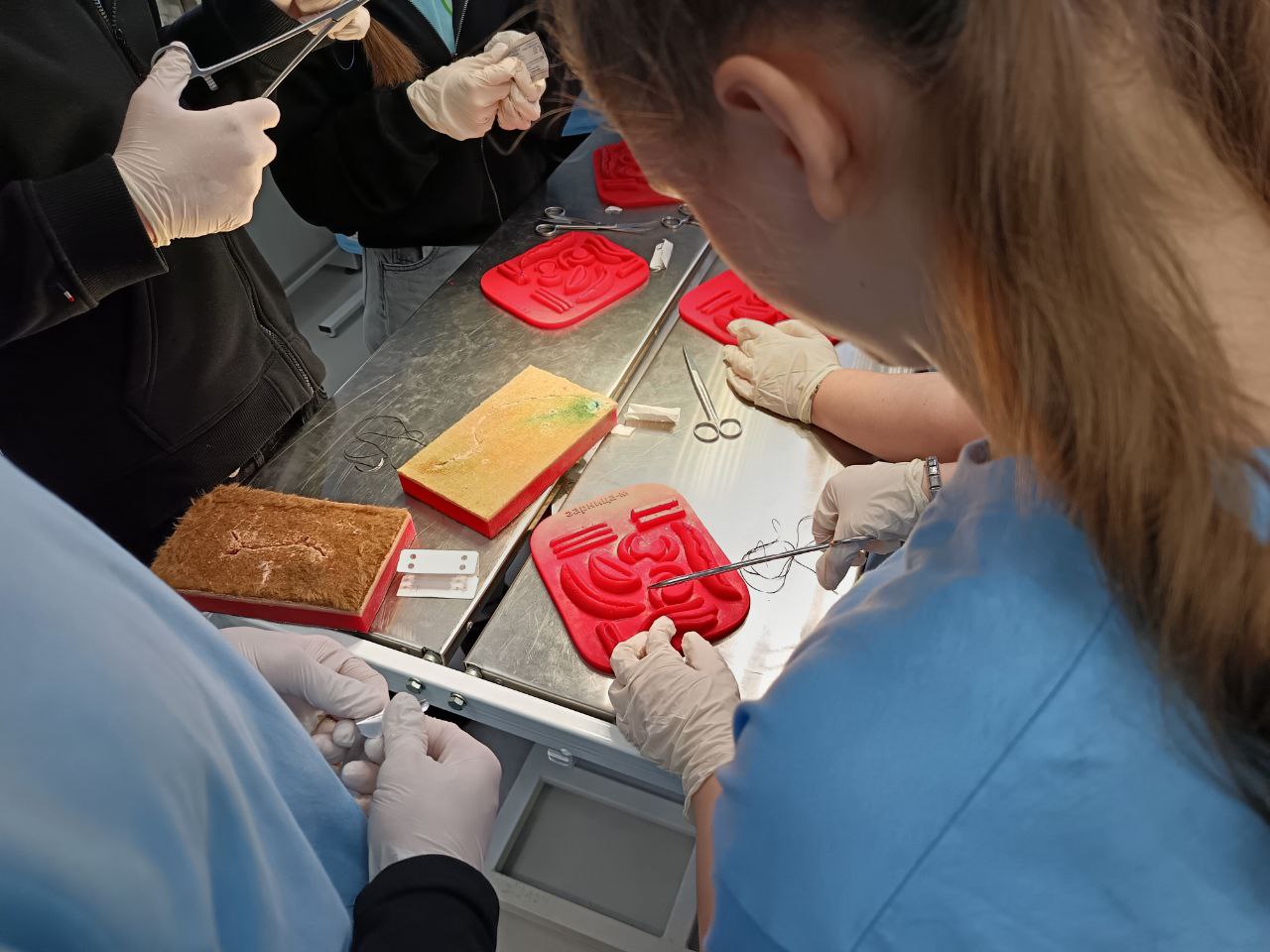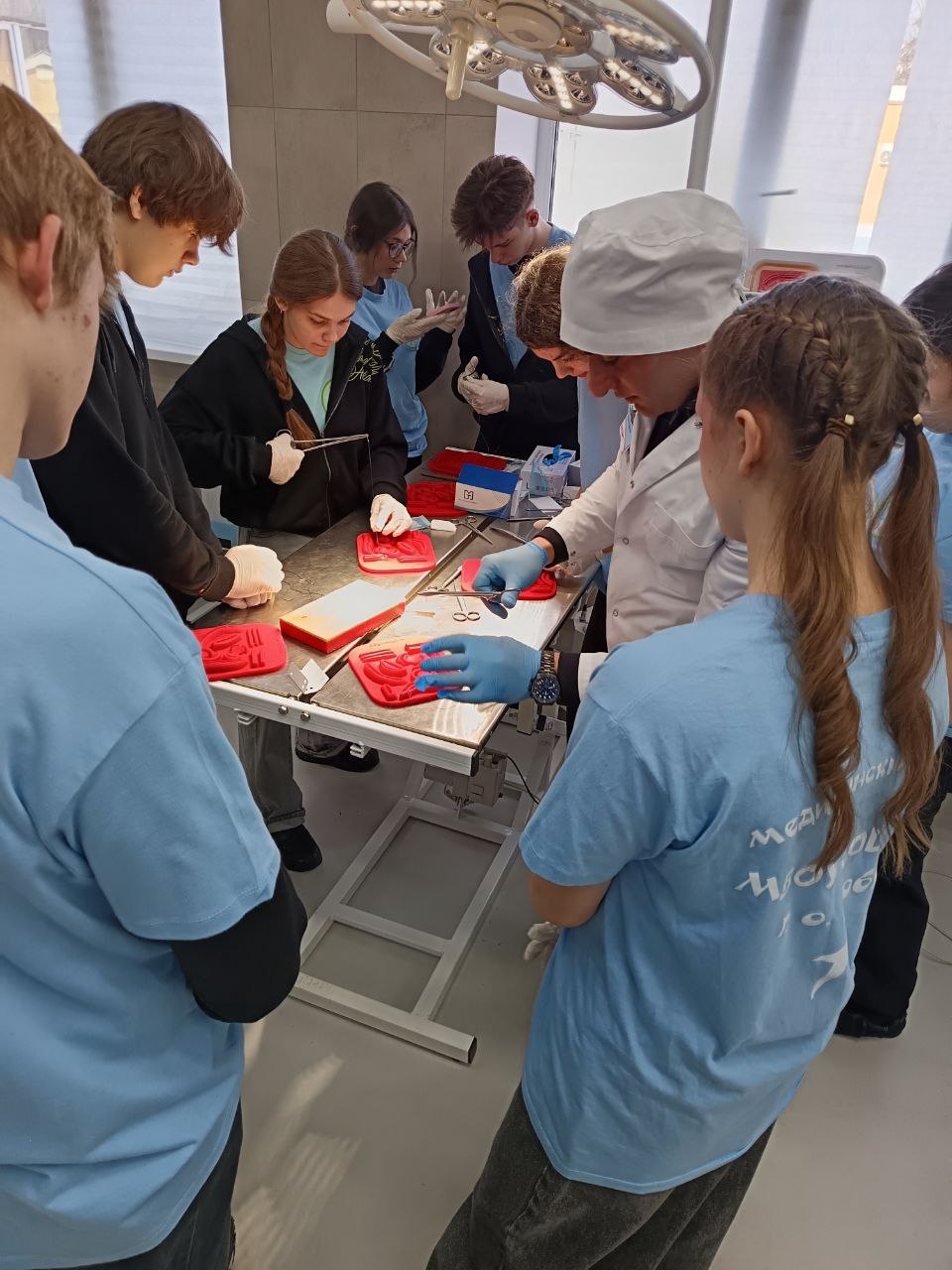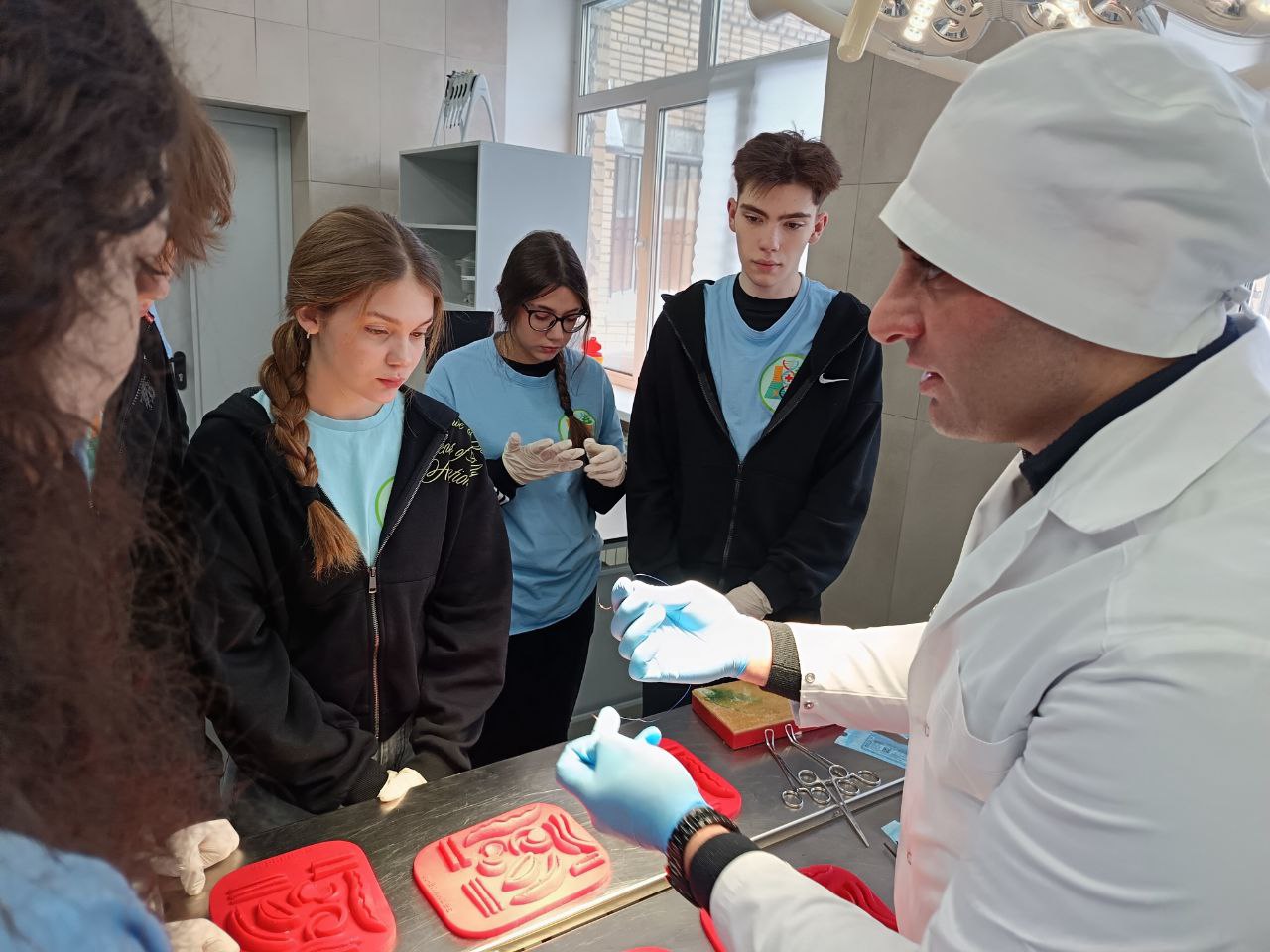 Особое внимание уделялось строгому алгоритму действий и правильной организации рабочего пространства, которые обеспечивают успех и безопасность ветеринарных манипуляций. Участники под наблюдением преподавателей-наставников освоили практические навыки внутривенных инъекций, провели забор крови из периферической вены. Впервые взяв в руки настоящие хирургические инструменты – иглодержатели, хирургические иглы и шовный материал – школьники отработали основы наложения хирургических швов. Этот опыт стал для них ценным шагом в профессиональном самоопределении.