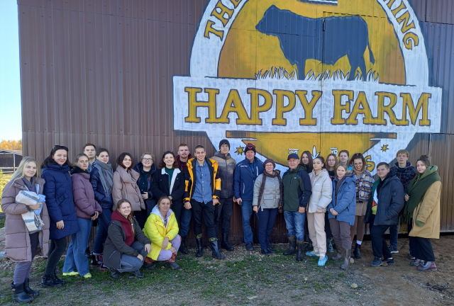 Студенты 4 курса Института зоотехнии и биологии посетили предприятие по разведению племенного скота «Хэппи Фарм» и племенной репродуктор «ДИК». Специалисты двух хозяйств познакомили гостей с уникальными методиками содержания крупного рогатого скота мясного направления продуктивности.