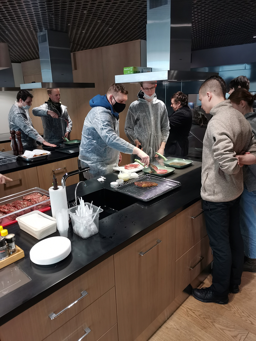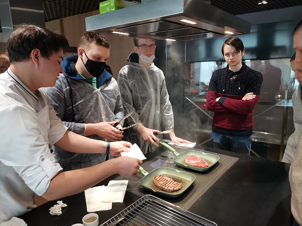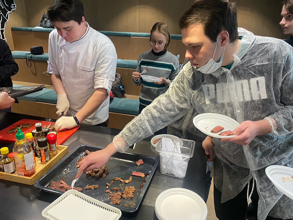 Мастер-класс со студентами по технологии приготовления стейков из мяса породы Black Angus провёл шеф-повар компании «Мираторг» Дмитрий Лазько. Он поделился тонкостями приготовления обжаренного мяса из разных частей туши животного. Студенты Тимирязевки не только участвовали в процессе приготовления, но и принимали непосредственное участие в дегустации готовых блюд.