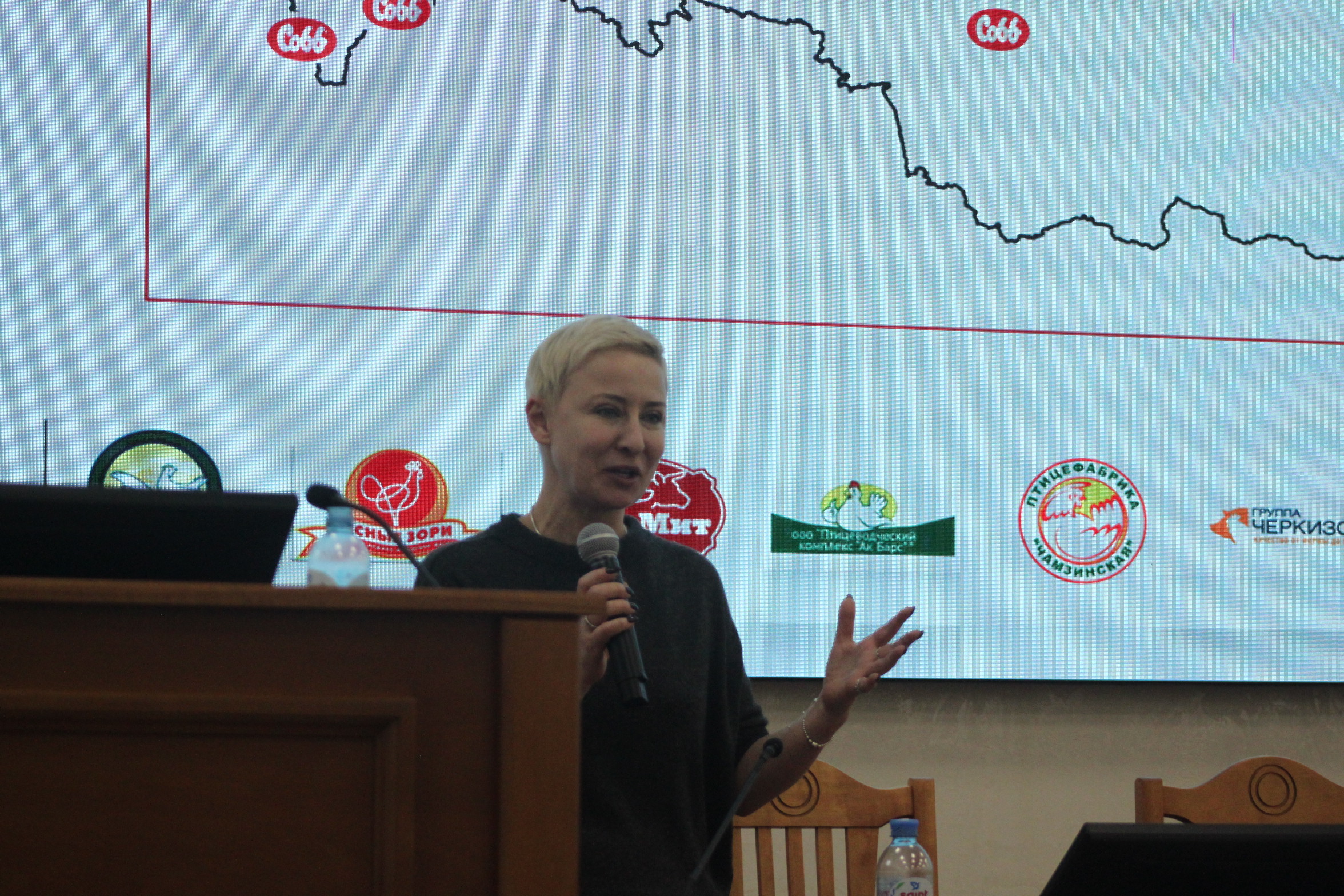 Е.Н. Сидорова рассказала об истории создания компании, объемах производства и географии распространения бройлеров кросса Кобб, о мировом производстве мяса птицы. Были затронуты вопросы, связанные с трудоустройством и ближайшими перспективами для молодых специалистов, которые решат связать свою профессию с племенным птицеводством.