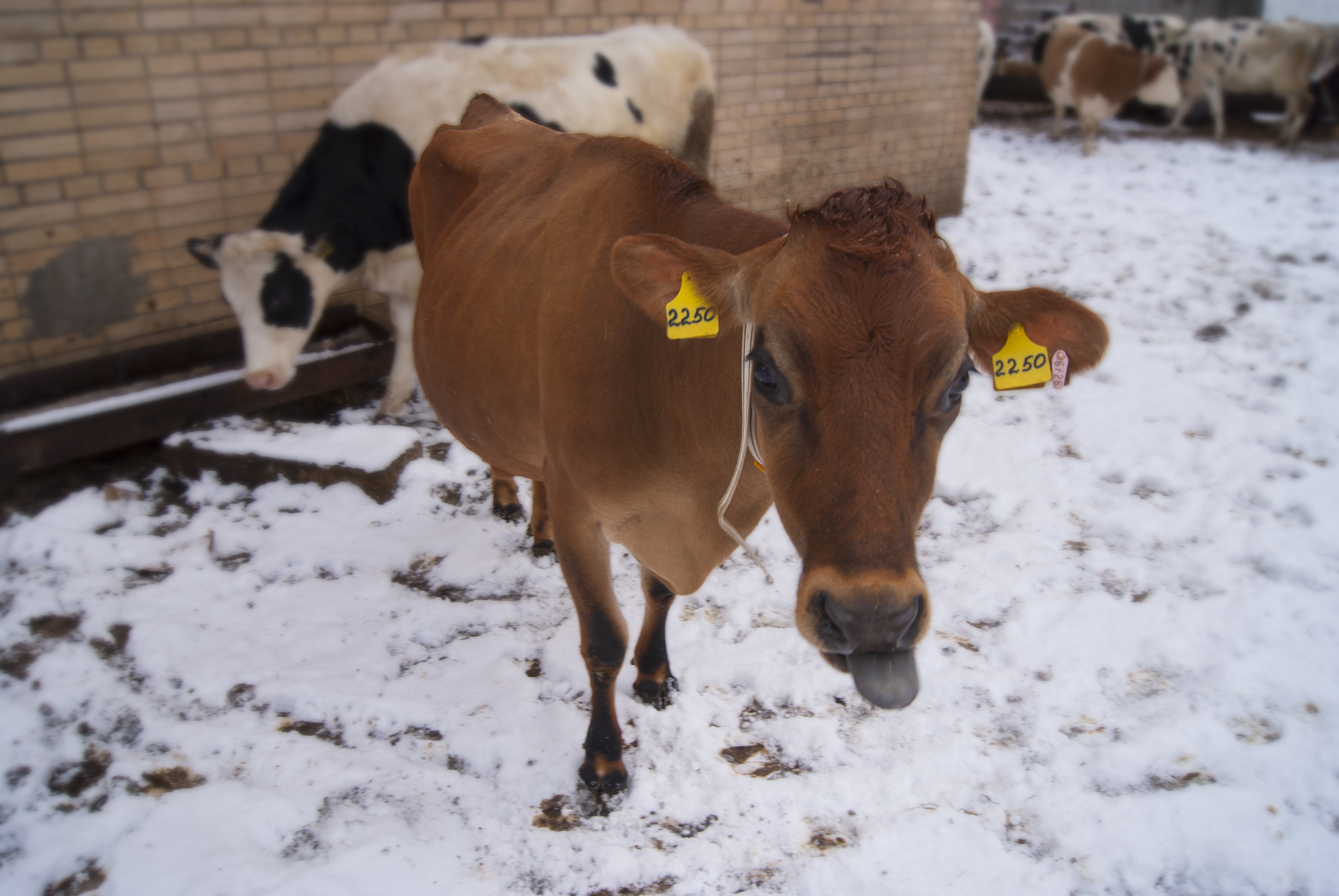 Корова Свобода бурой швицкой породы более крупная, весит 572 килограмма. Этой взрослой особи 5 лет и 10 месяцев, она уже несколько раз благополучно телилась. Продуктивность ее высока – 8522 килограмм молока жирностью свыше 4,0%, белковомолочностью от 3,4 %. Эту породу относят к универсальным, поскольку ее направленность продуктивности варьирует от молочно-мясного до мясо-молочного типа.