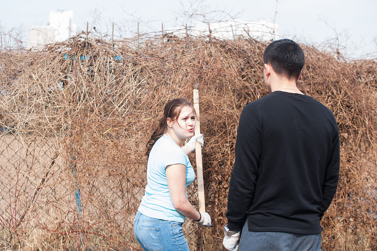 —Мы убрали старый деревянный настил, засохшую лозу с забора, - говорит будущий агроном Юлия Устинова. – Теперь поле готово к посадке, на нем мы будем проводить исследования.