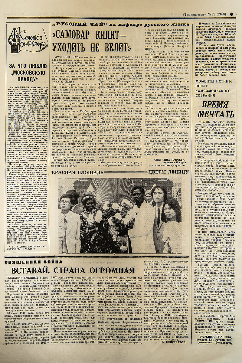 Эта фотография сделана в канун 9 мая 1986 года и опубликована в газете "Тимирязевец" от 10 октября того же года
