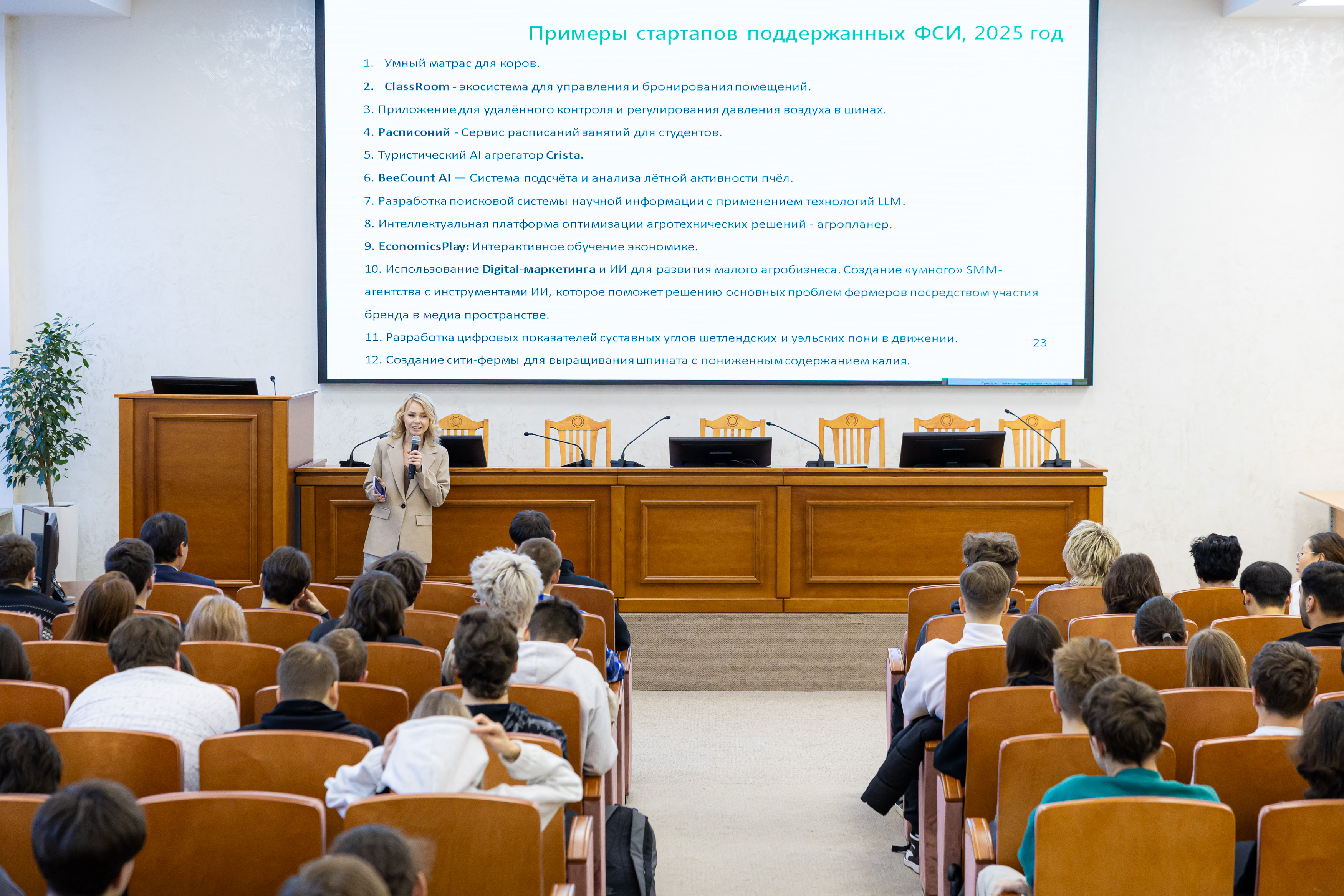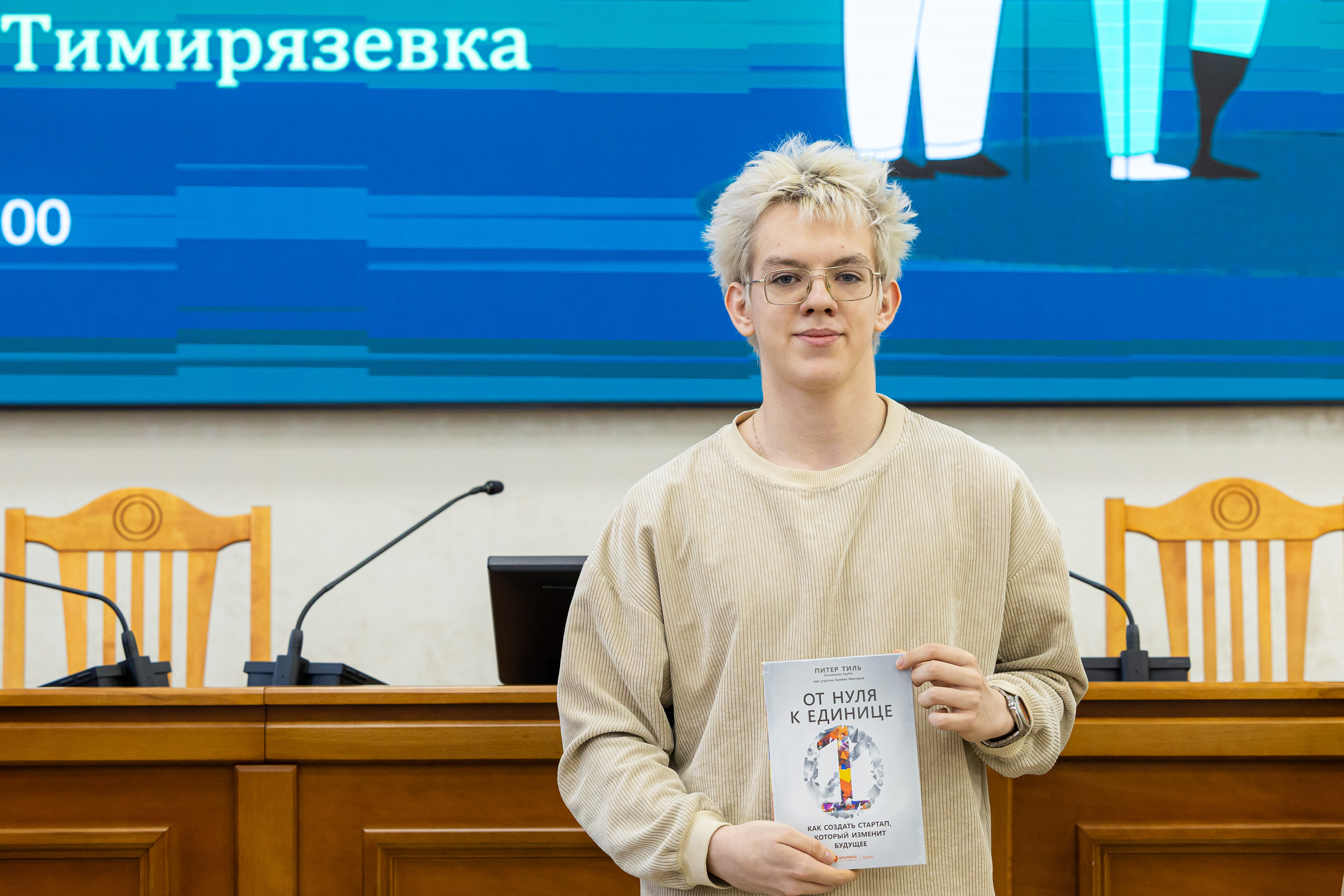 Студенты активно задавали вопросы и делились своим мнением по развитию стартапов в области искусственного интеллекта в сельском хозяйстве. Самый активный студент получил памятный и очень полезный подарок – книгу Питера Тиля «От 0 к 1», являющуюся бестселлером в стартап-мире.