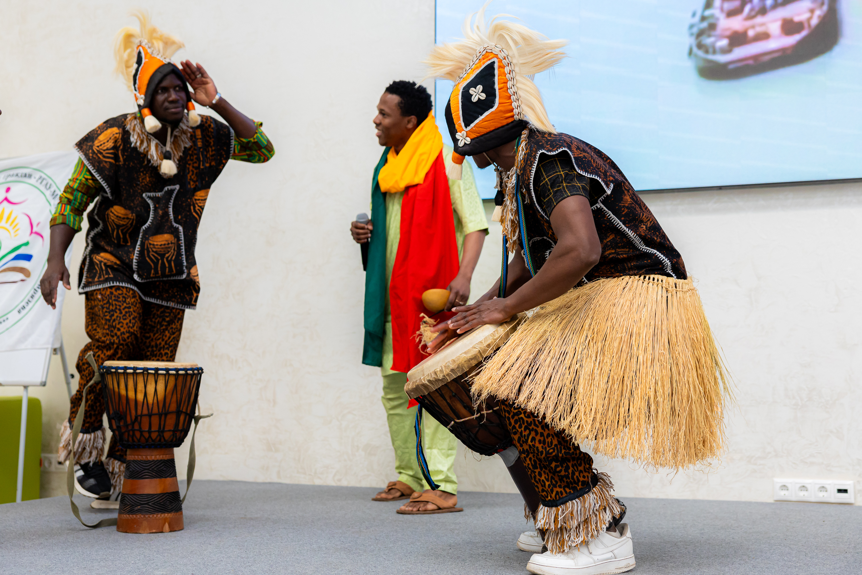 07 Июнь / 2025День Африки прошел ярко и незабываемо в стенах Точки кипения «Тимирязевка». Участники погрузились в атмосферу многообразия и богатства африканской культуры, которая была представлена через множество мероприятий. В программе дня присутствовали не только выставка художественных работ и ремесел, но также насыщенная концертная программа, где зрители смогли насладиться музыкой и танцами, отражающими дух Африки.