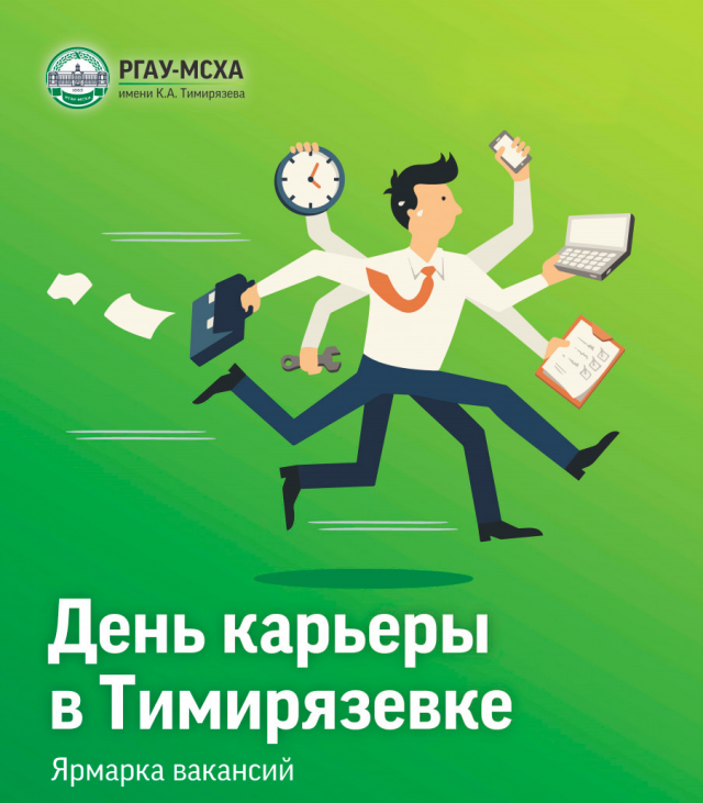 Приняв участие в «Дне карьеры в Тимирязевке», Вы получите возможность презентовать свою организацию, пообщаться со студентами и выпускниками по вопросам производственной практики и трудоустройства, договориться о сотрудничестве с выпускающими кафедрами.