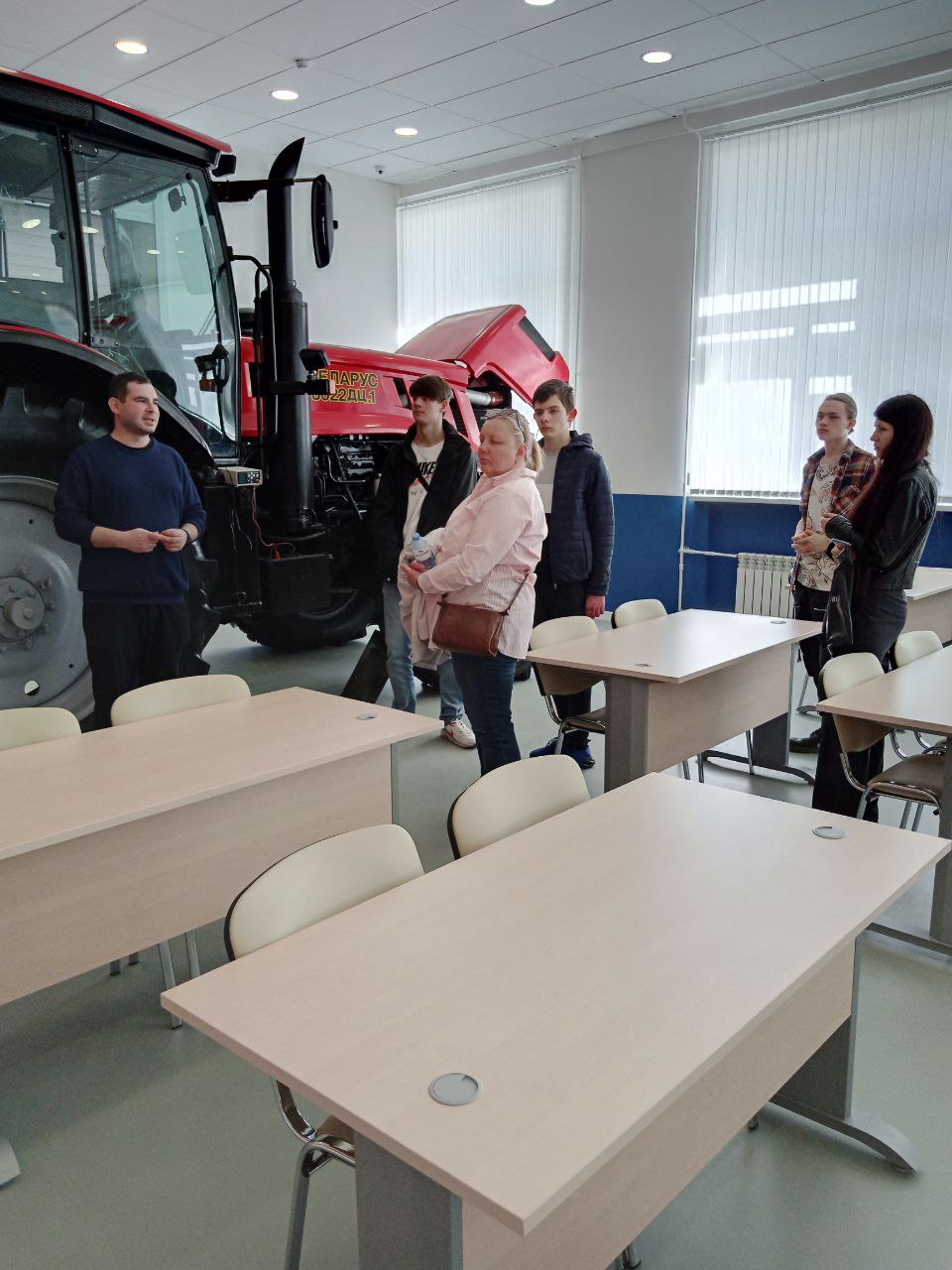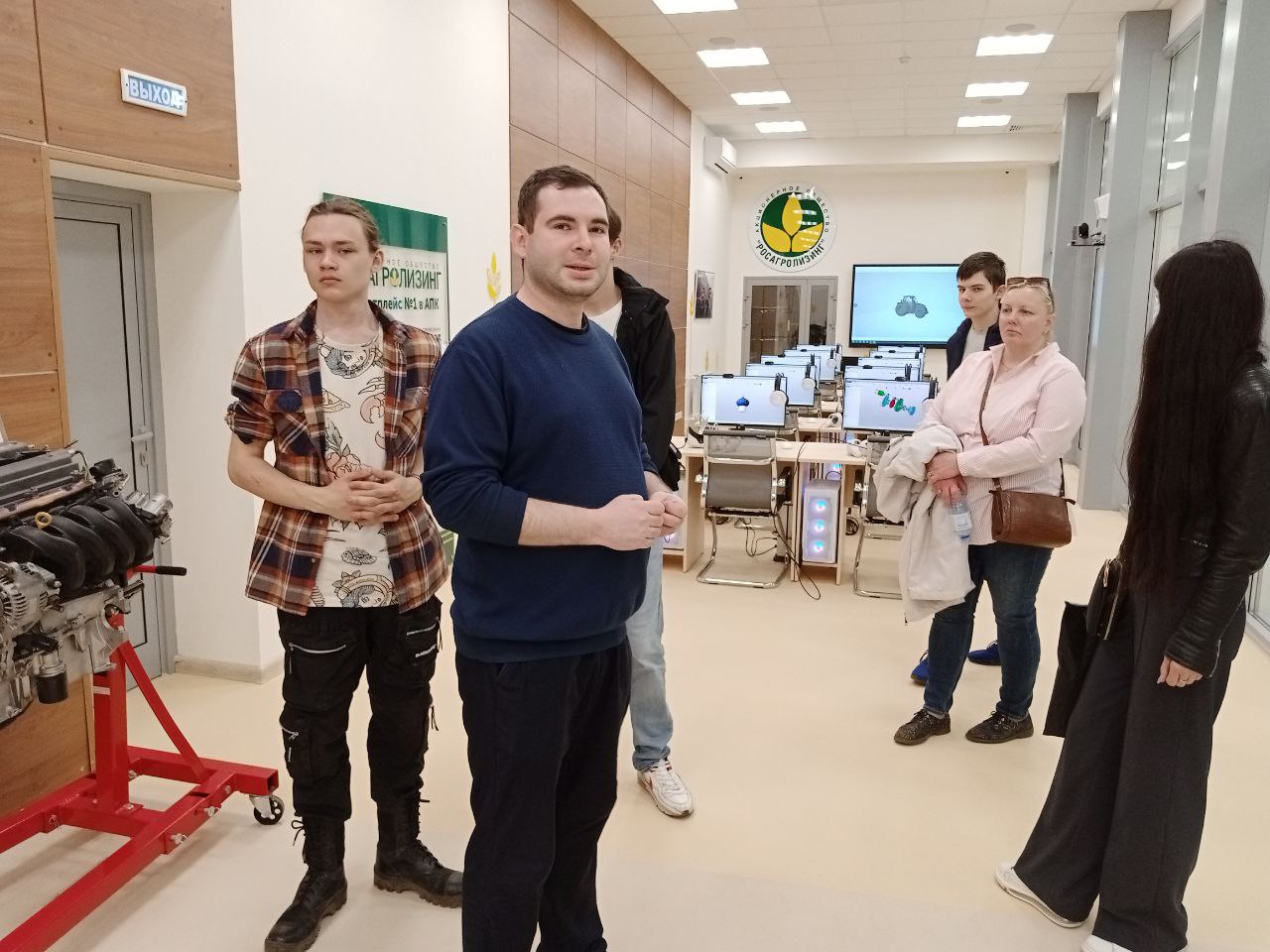 Далее доцент кафедры тракторов и автомобилей Гузалов А.С. продемонстрировал автотракторный парк кафедры, рассказал о современной лаборатории технического обслуживания и диагностики автомобилей с ДВС, показал аудиторию АО «Росагролизинг» и новейшую виртуальную лабораторию «Цифровой трактор».
