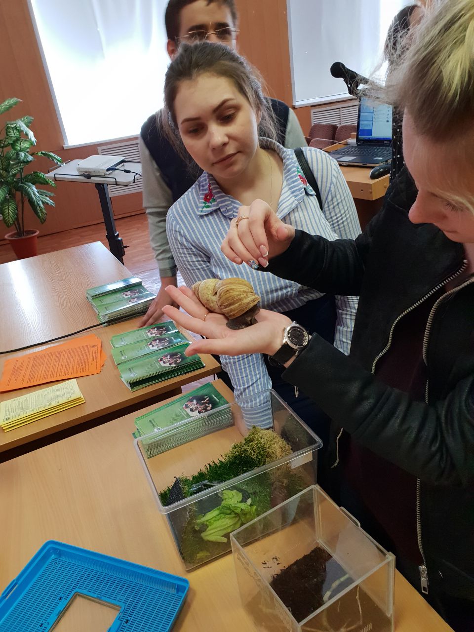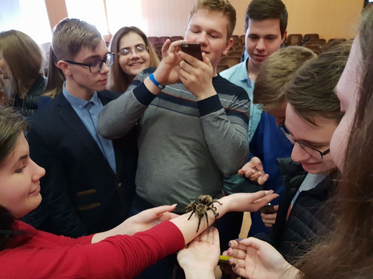 Старший преподаватель кафедры зоологии Мария Борисова рассказала, что помимо учебной в академии хорошо развита досуговая инфраструктура. Есть возможность заниматься спортом, художественной самодеятельностью, игрой на музыкальных инструментах. Кроме того, она привезла с собой свою любимую собачку Оську и насекомых из тимирязевского вивария: паука-птицееда, палочника и мадагаскарских тараканов.