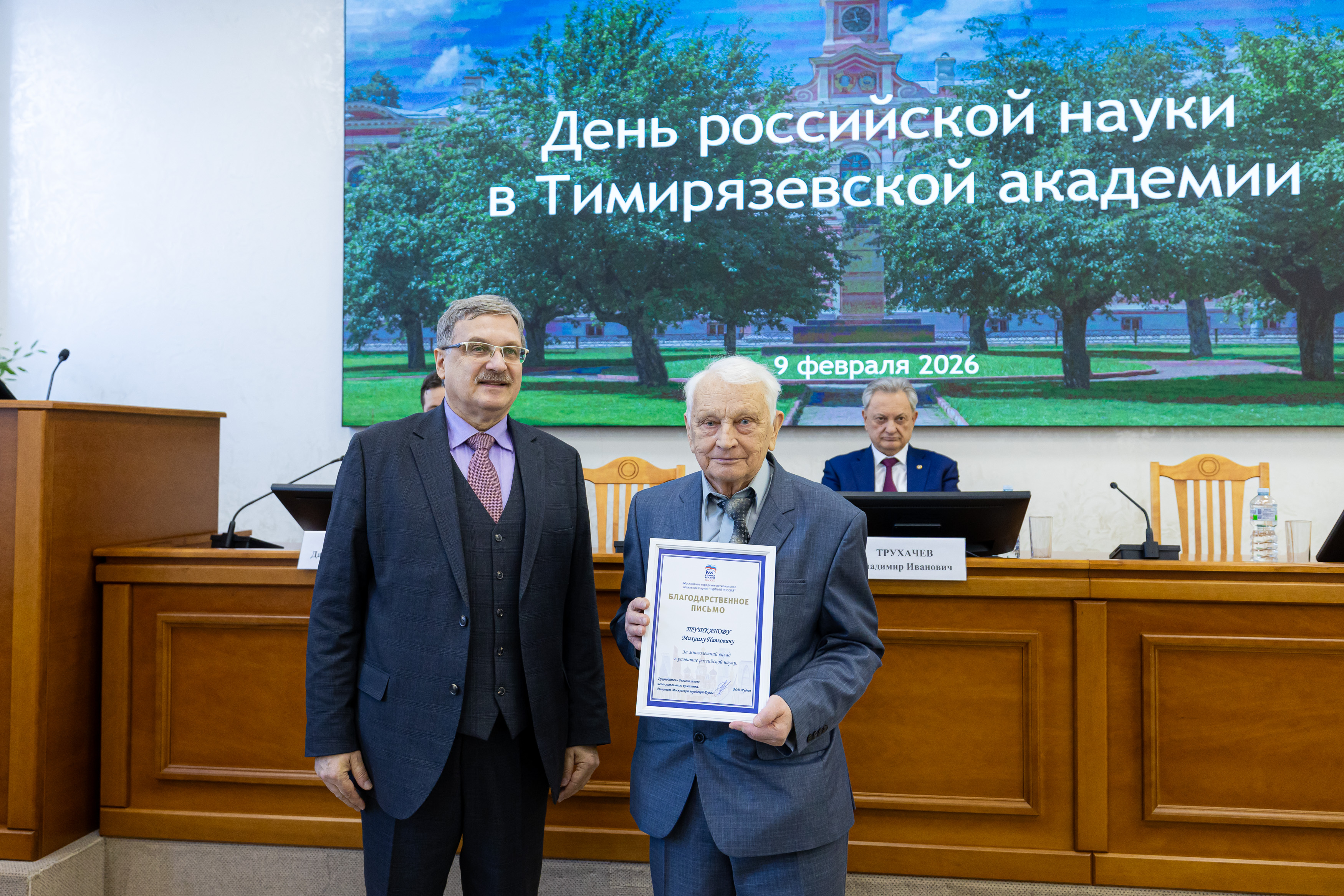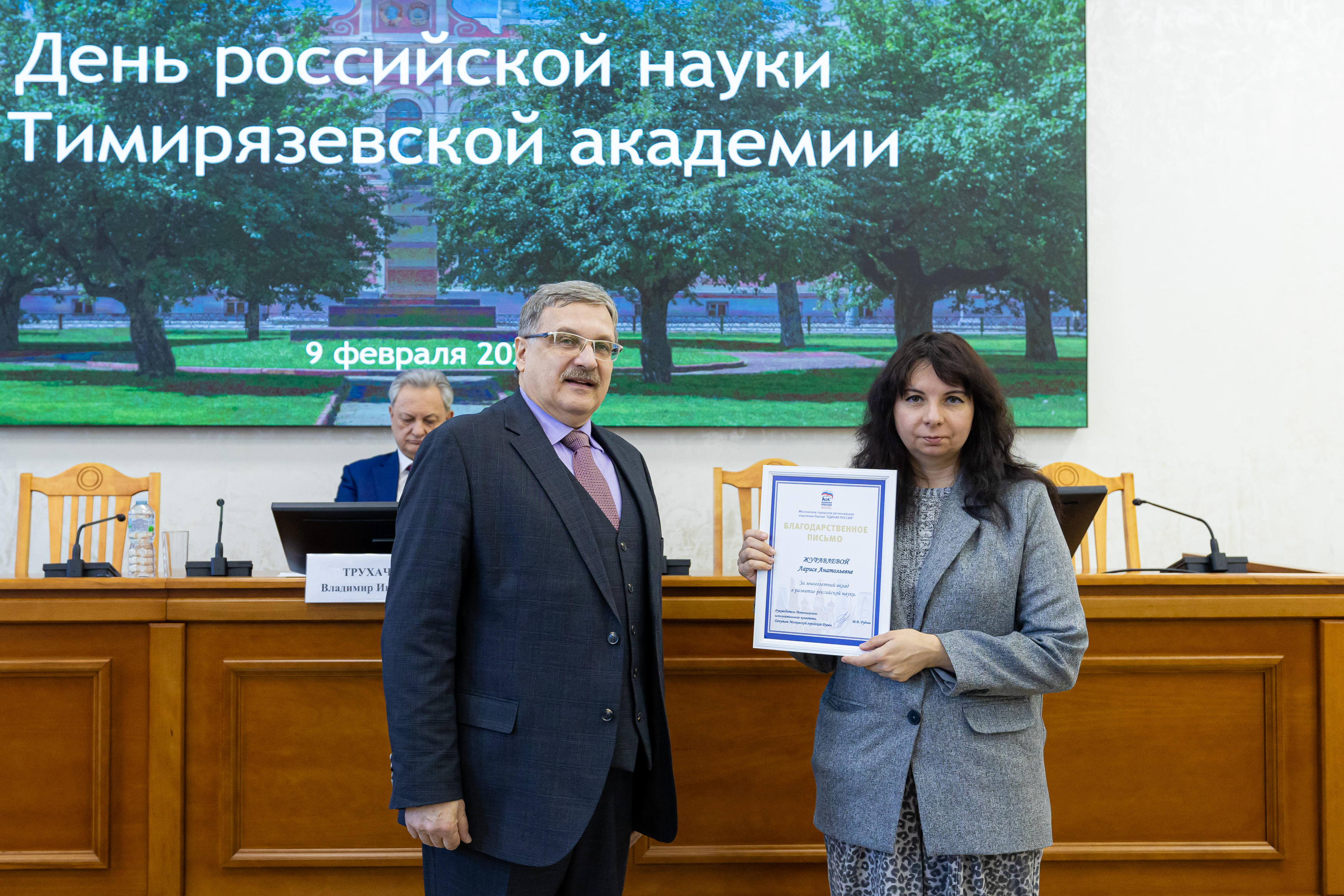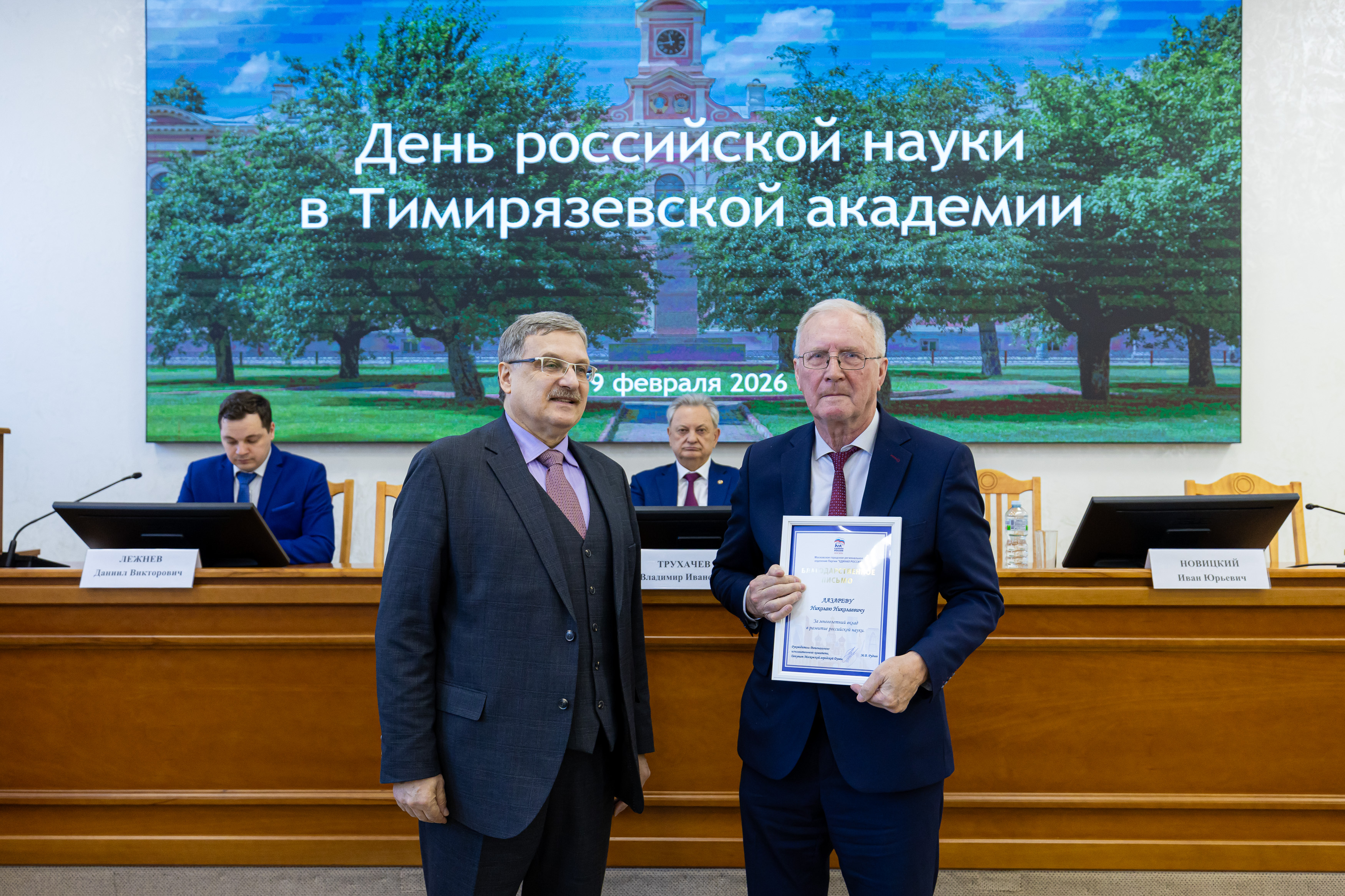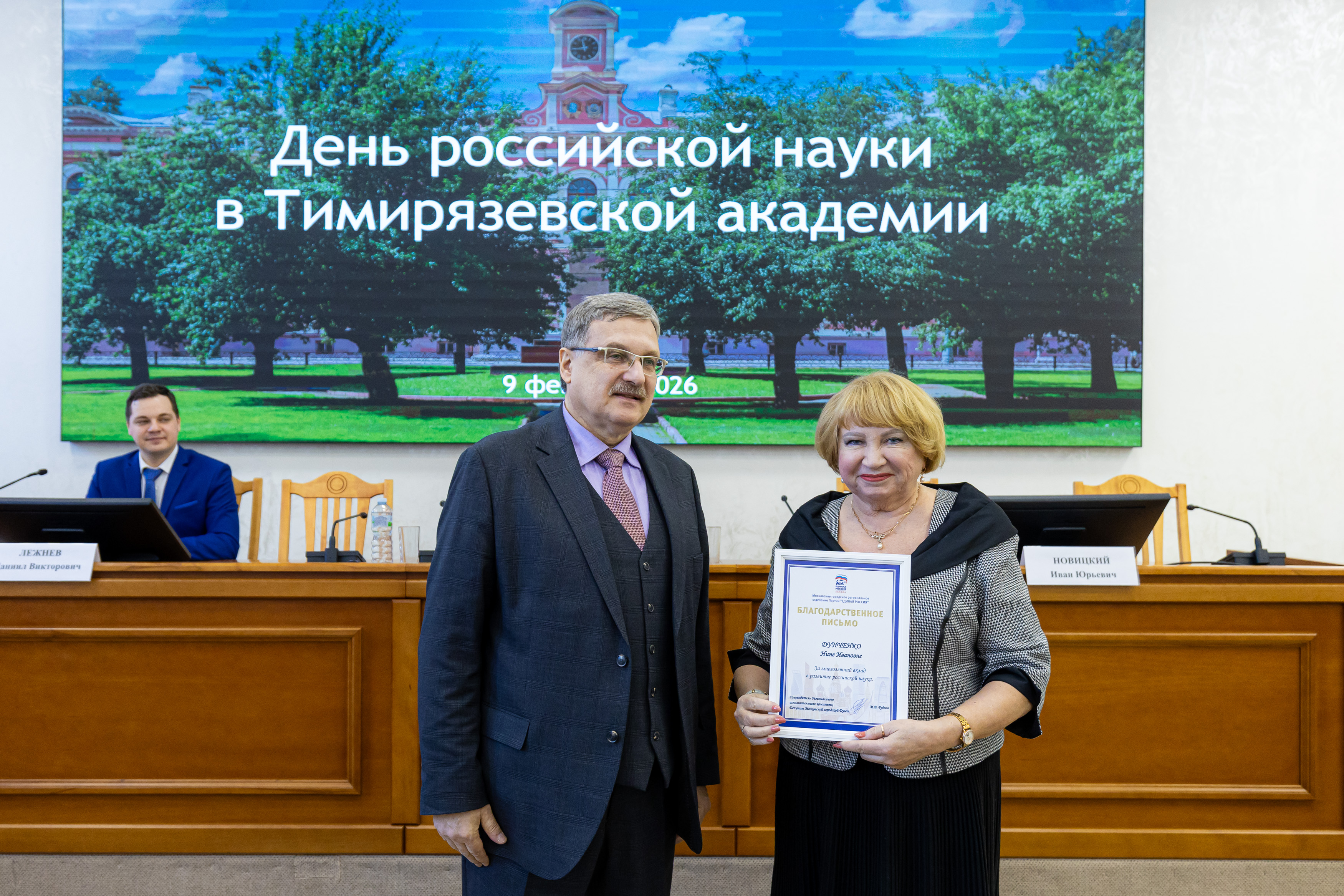 Еще ряд благодарностей ученые получили от «Единой России». В мероприятии принял участие секретарь партии Тимирязевского района Иван Юрьевич Новицкий.